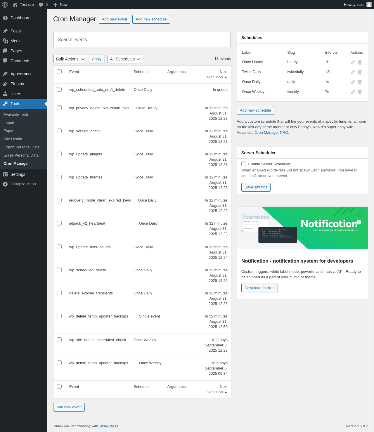 Does Advanced Cron Manager work with WordPress 6.8.2 and PHP 8.1.12? A smoke test was performed on .