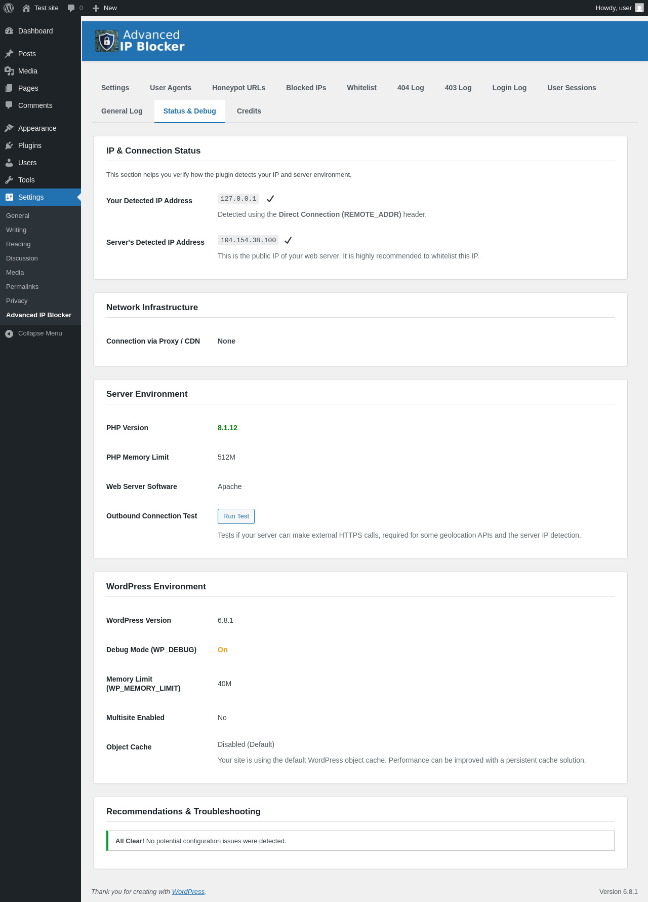 Does Advanced IP Blocker work with WordPress 6.8.1 and PHP 8.1.12? A smoke test was performed on .