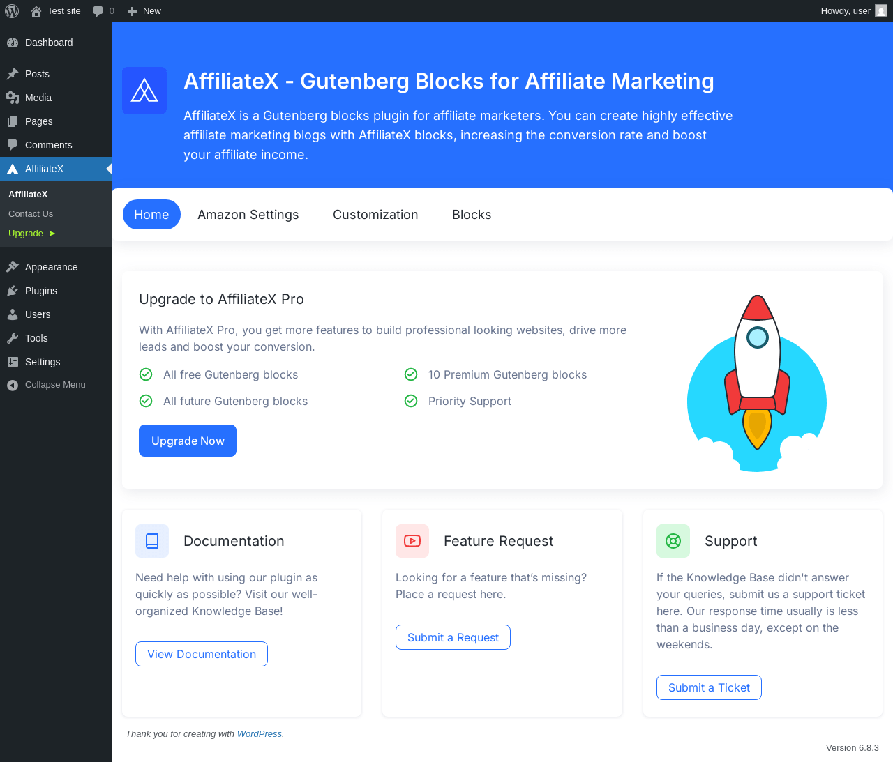 Does "AffiliateX – Amazon Affiliate Plugin" work with WordPress 6.8.3 and PHP 8.1.12? A smoke test was performed on .