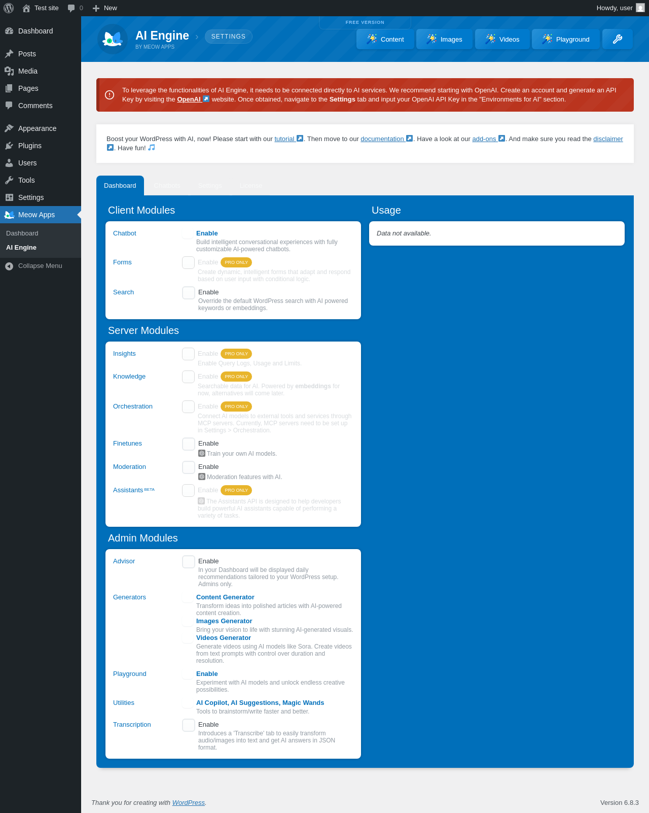 | URL | /wp-admin/admin.php?page=mwai_settings&nekoTab=dashboard |
