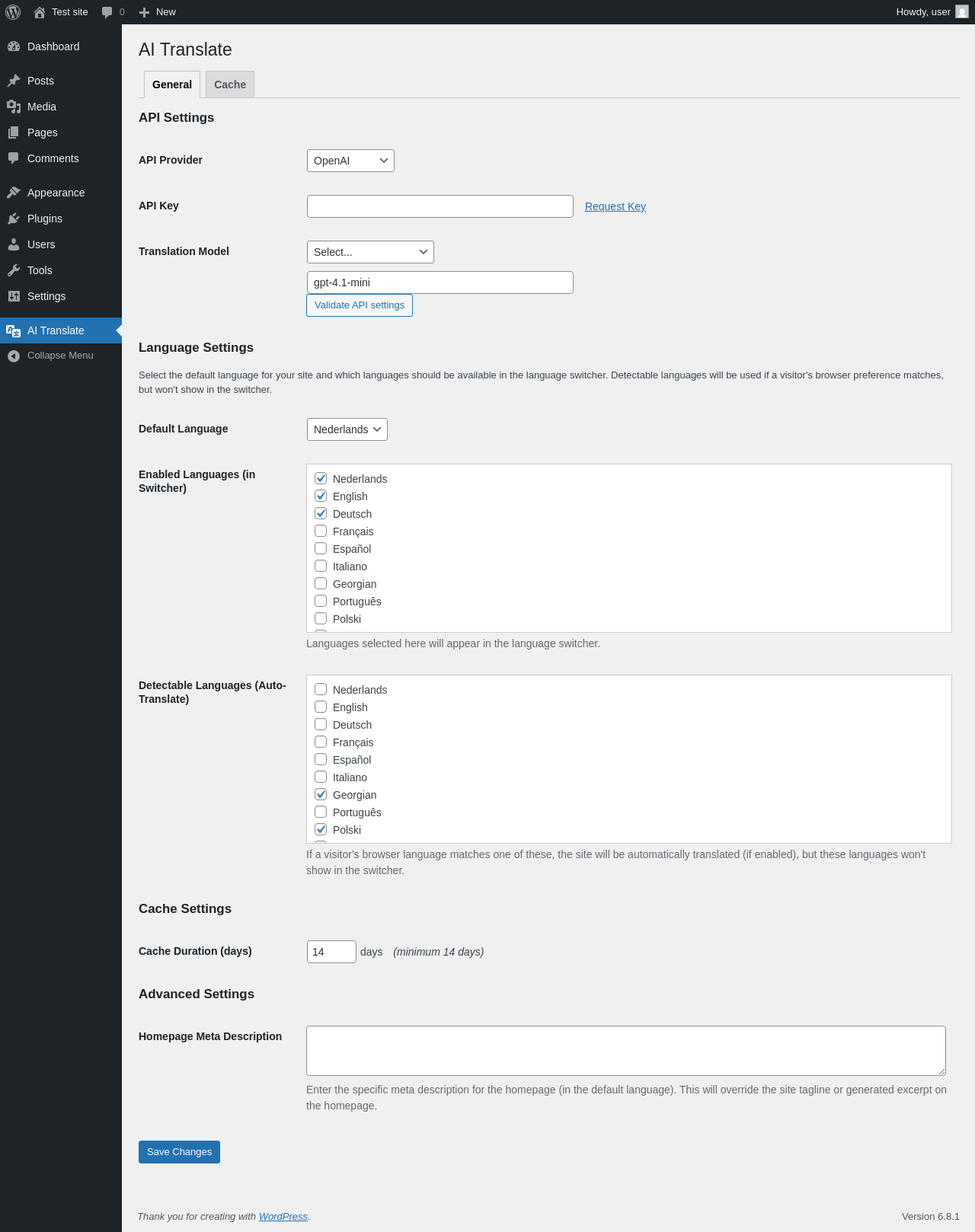 Does AI Translate work with WordPress 6.8.1 and PHP 8.1.12? A smoke test was performed on .