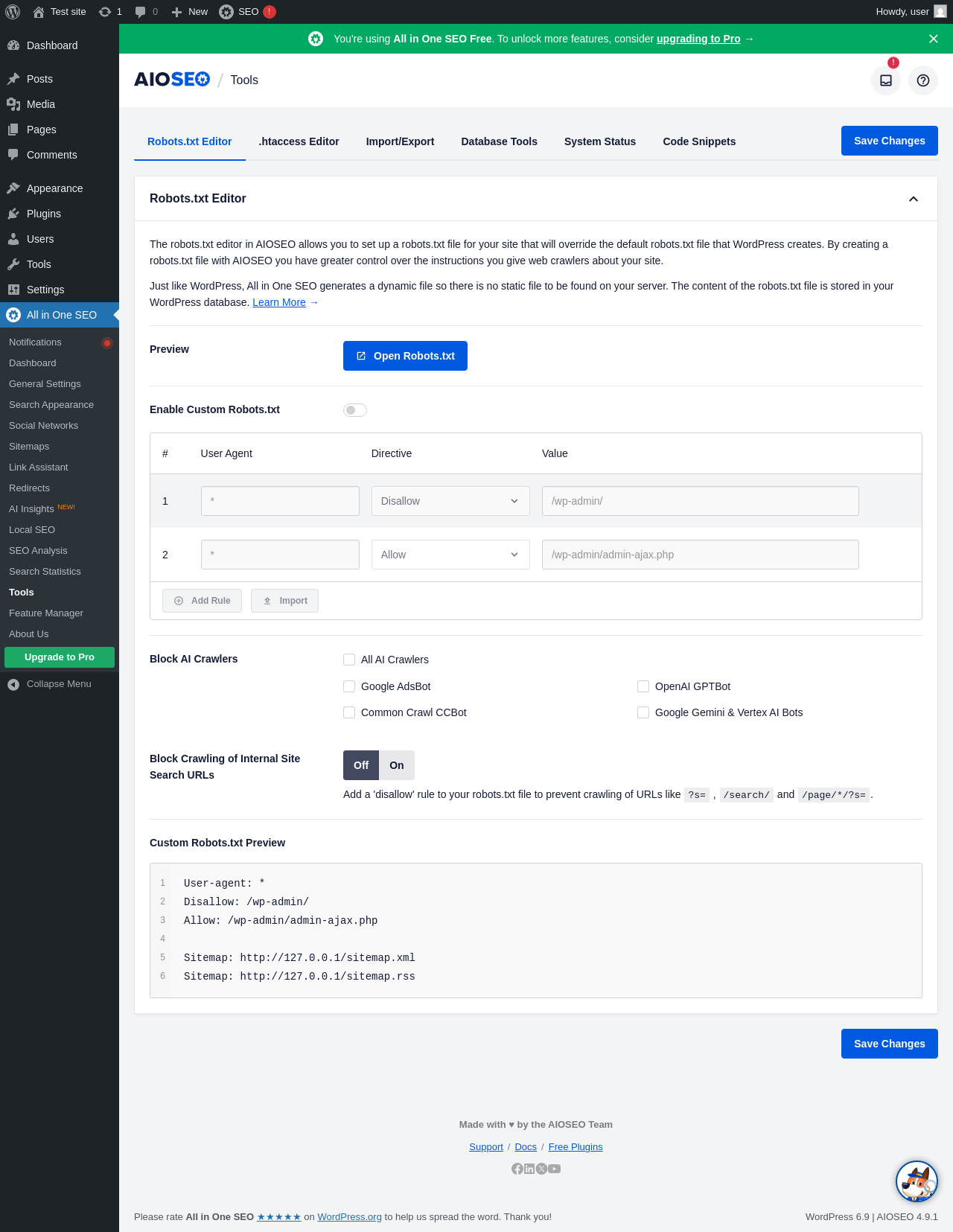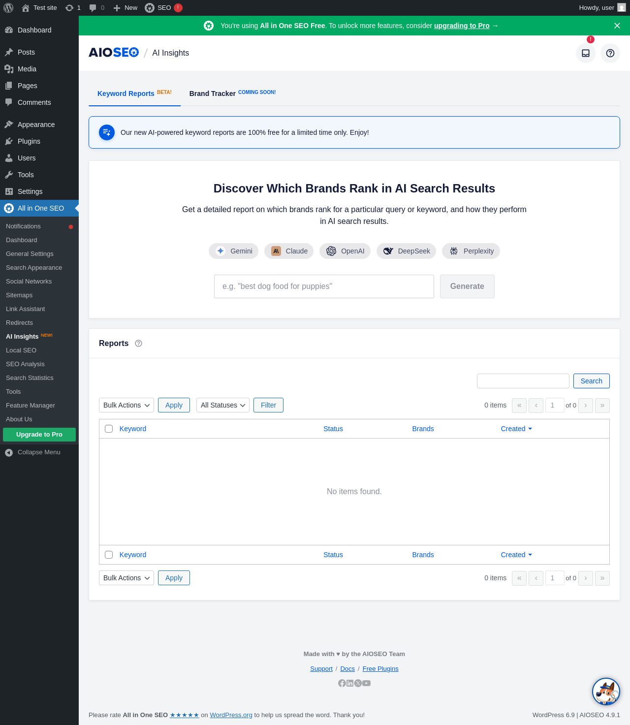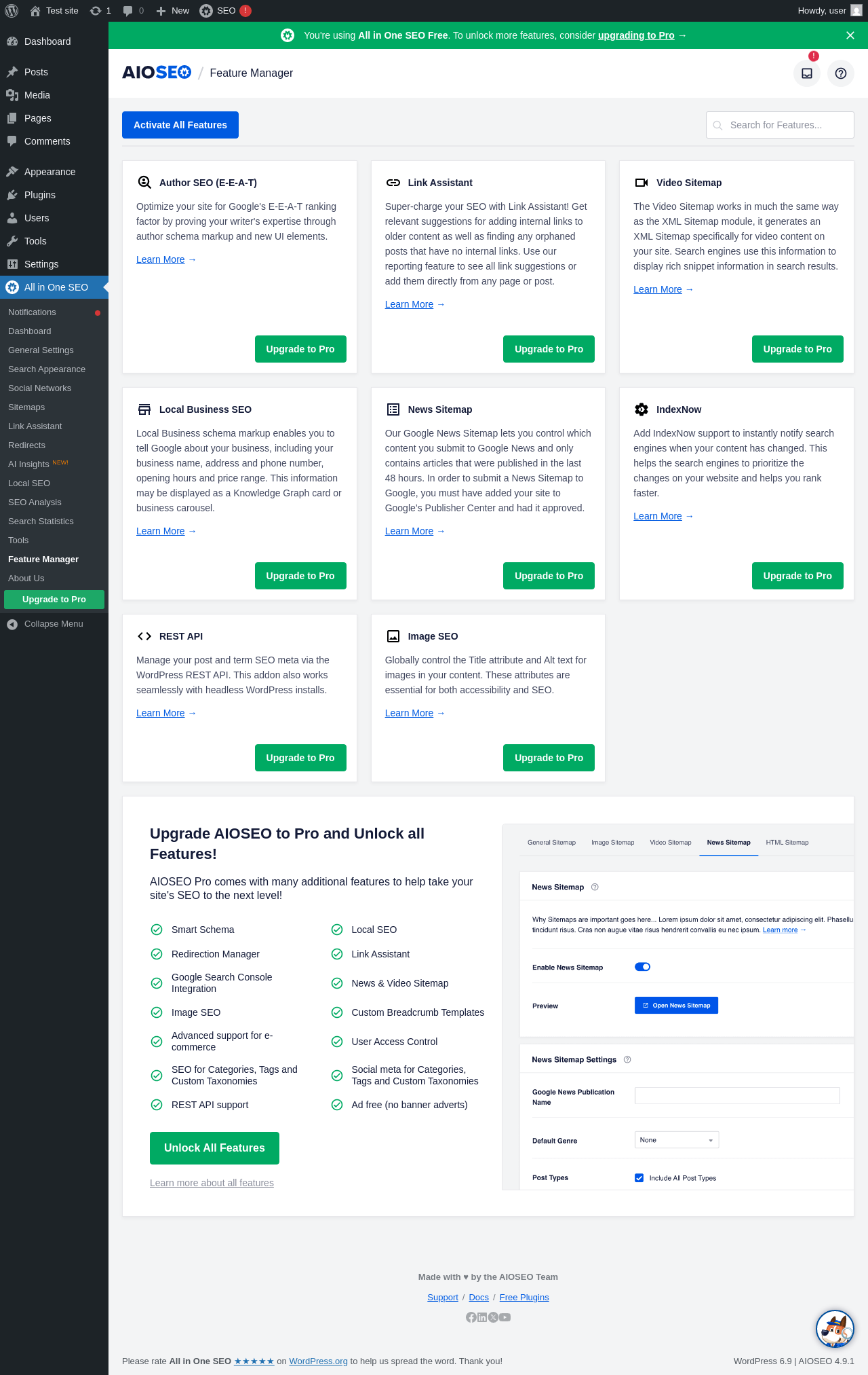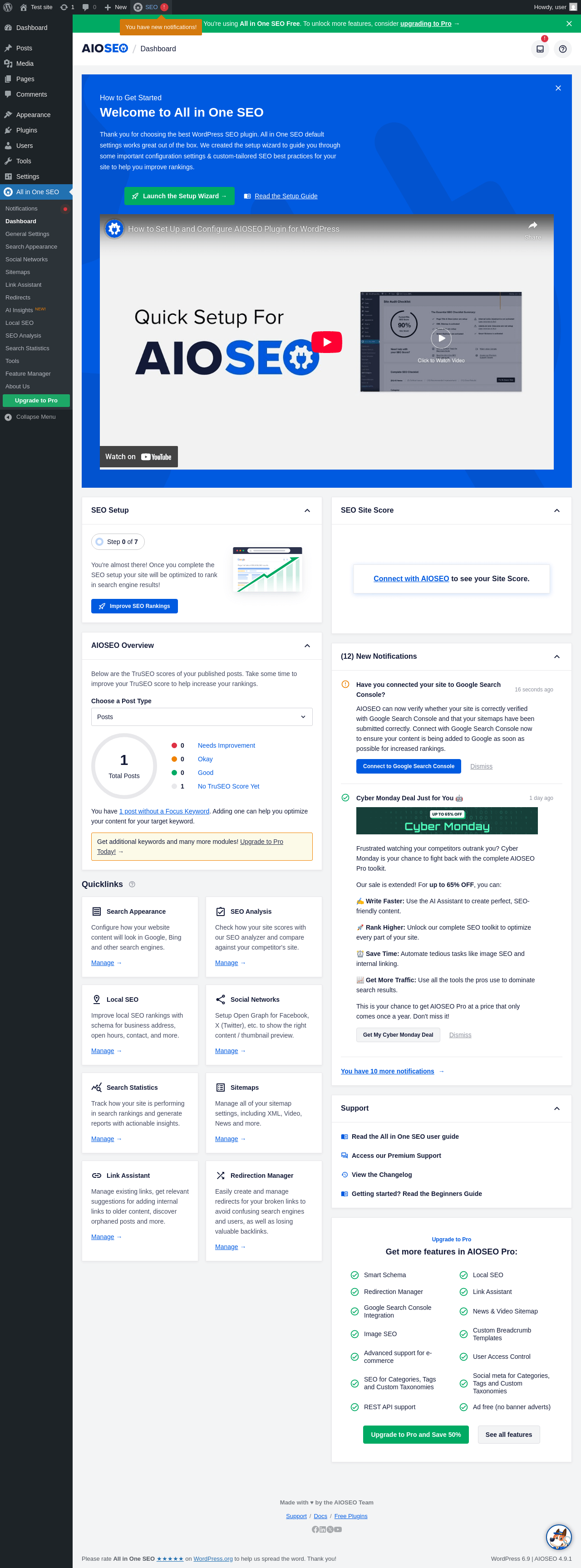 Dashboard ‹ Test site — WordPress