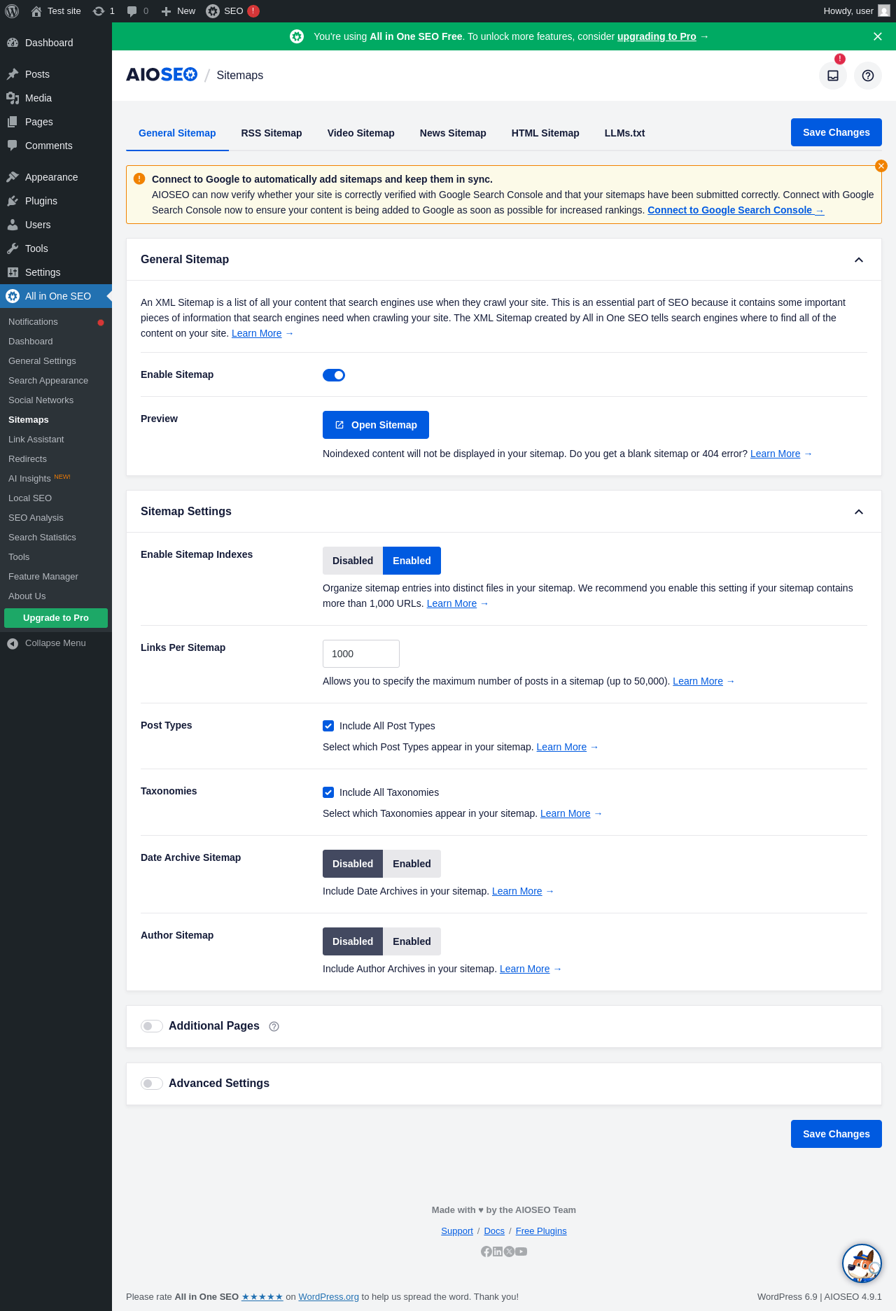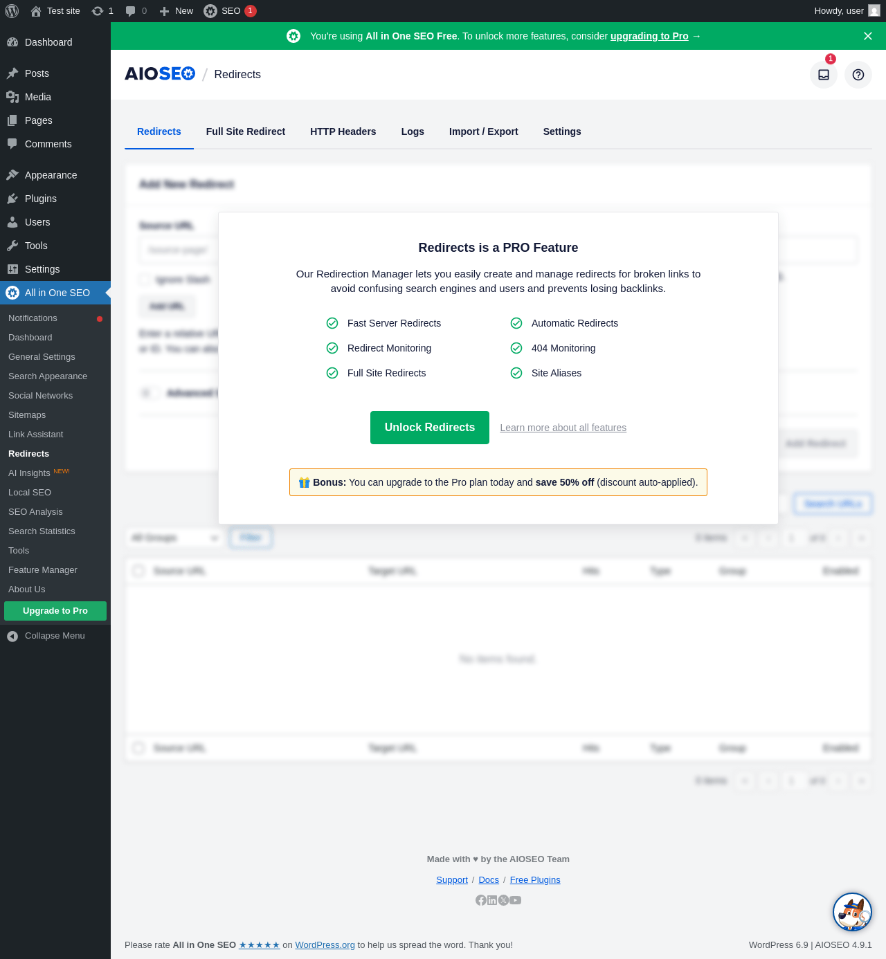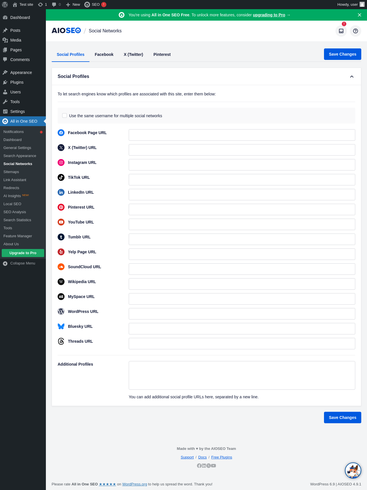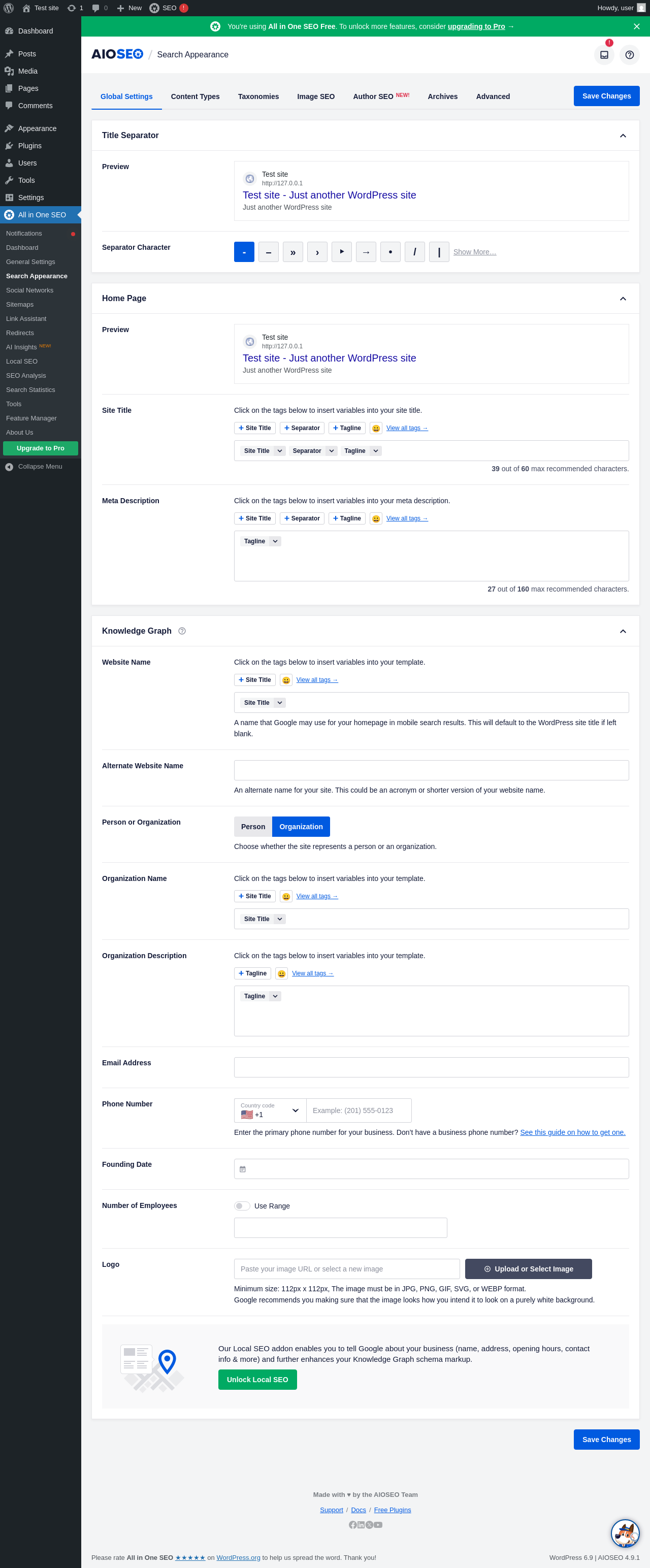 Dashboard ‹ Test site — WordPress