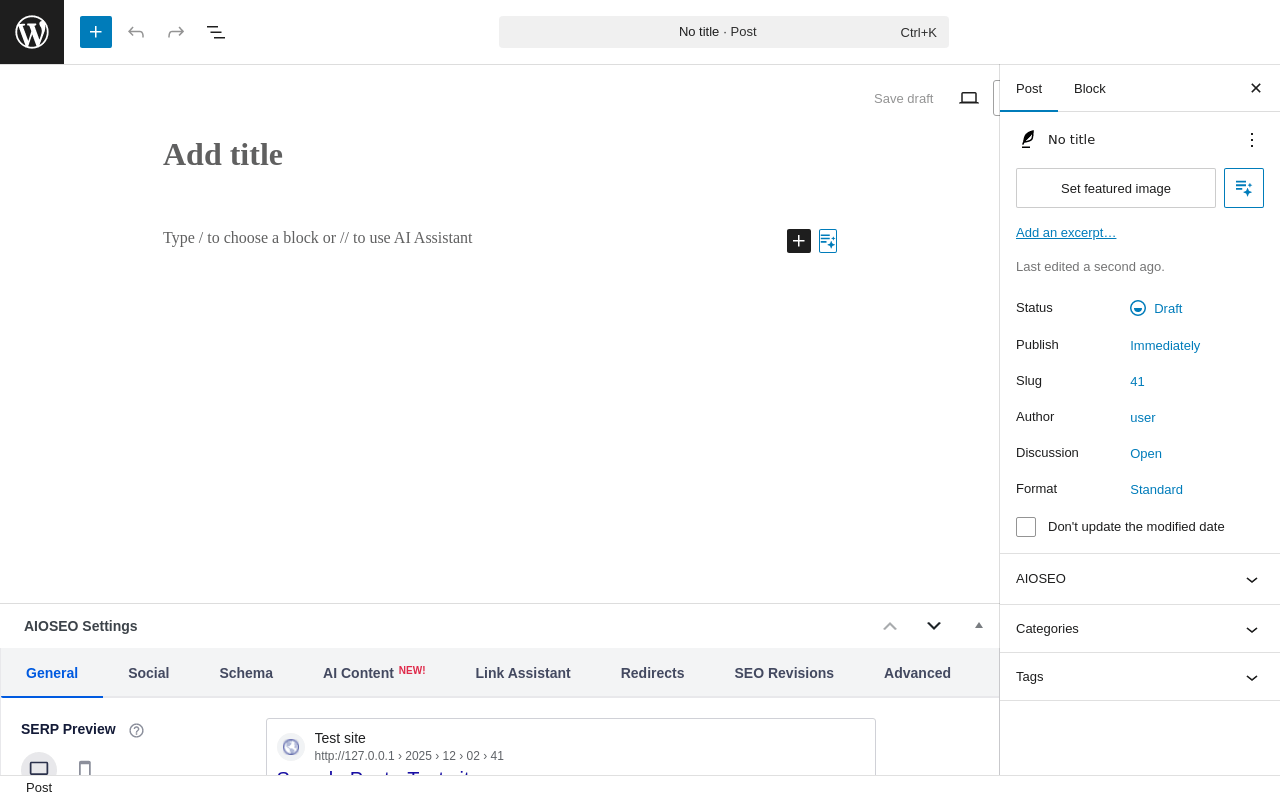 Add Post ‹ Test site — WordPress