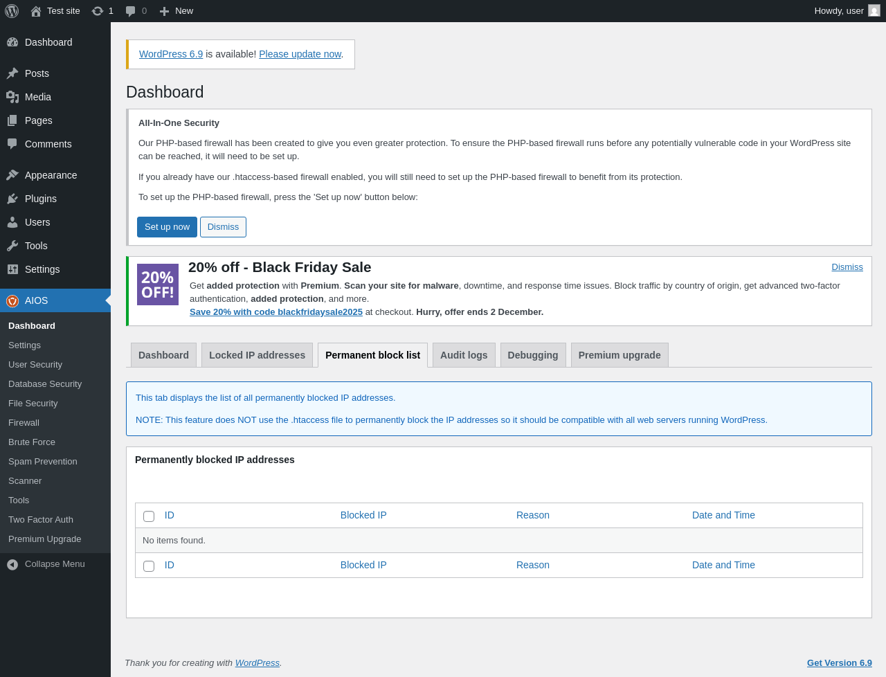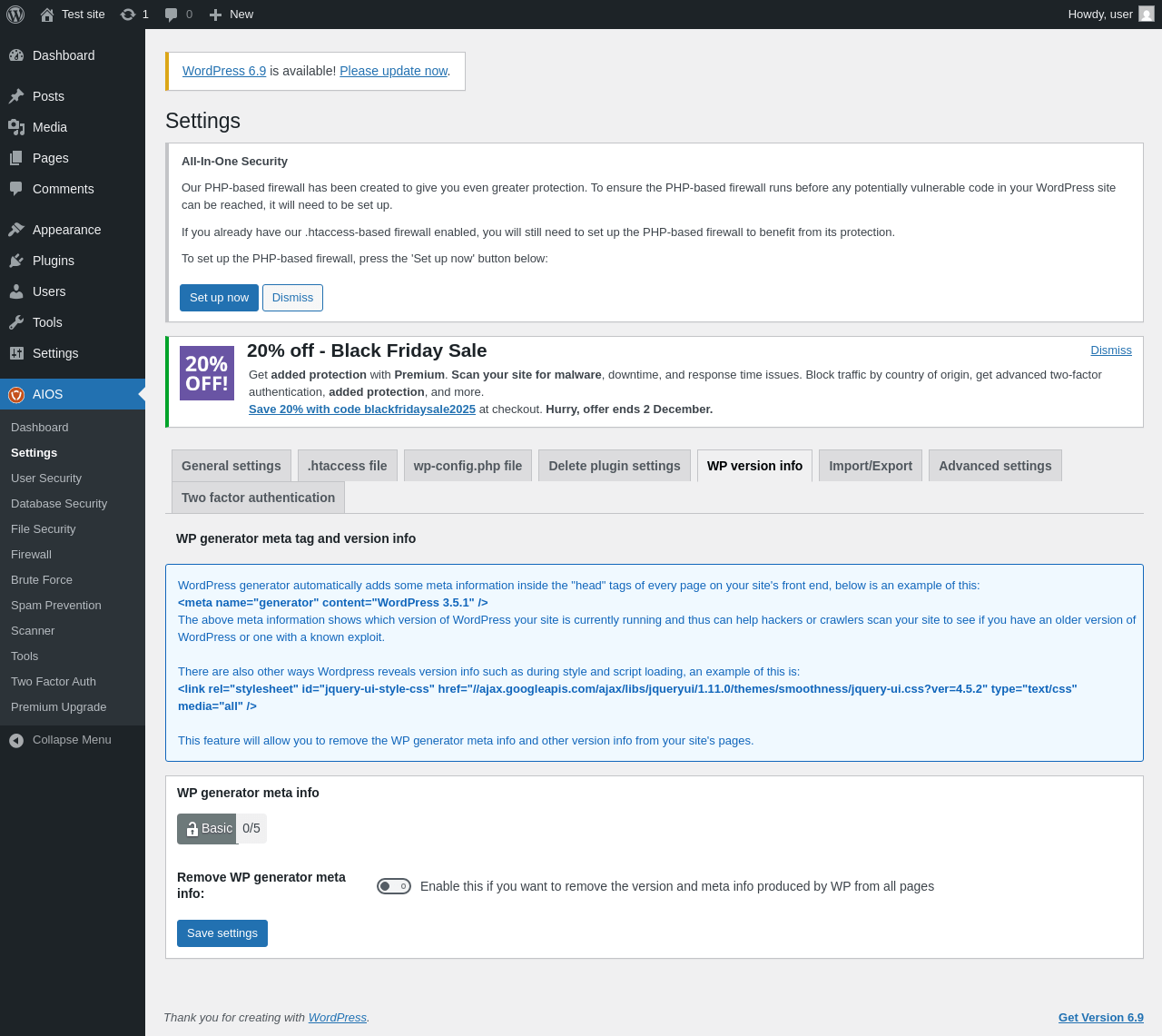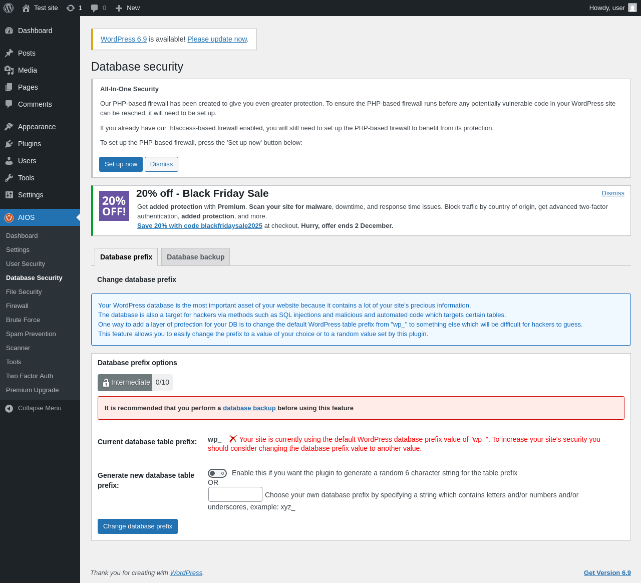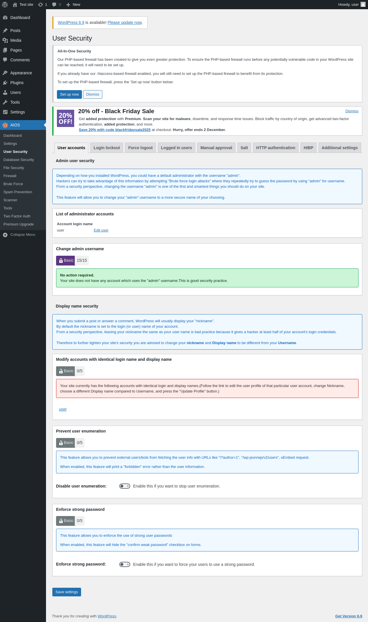 Does All-In-One Security (AIOS) work with WordPress 6.9 and PHP 8.1.12? A smoke test was performed on .