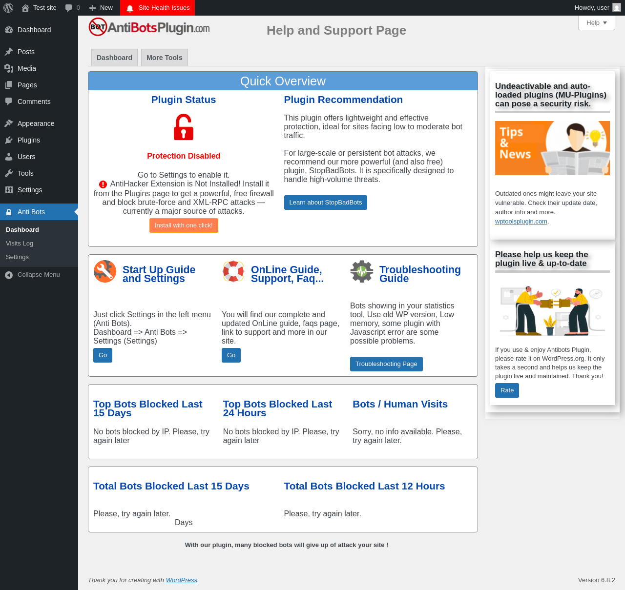| URL | /wp-admin/admin.php?page=anti_bots_plugin |