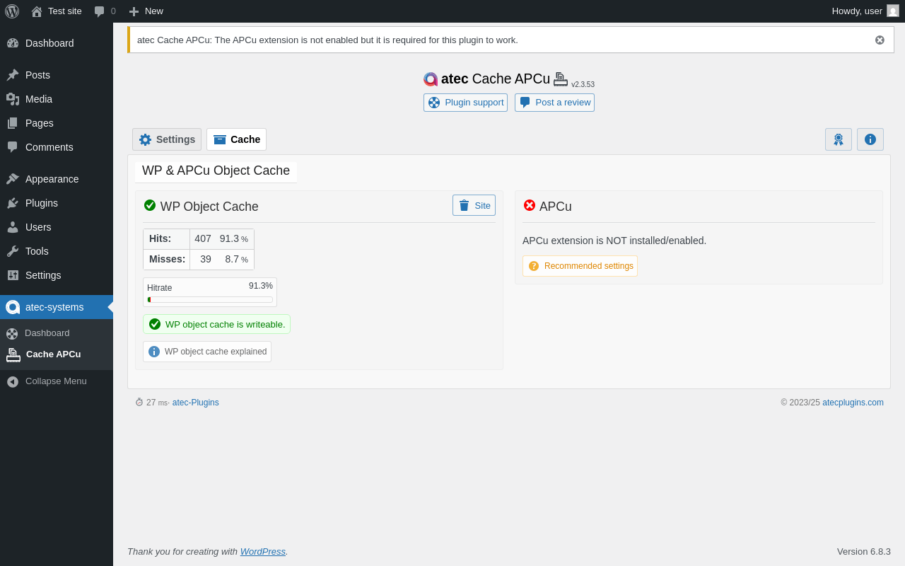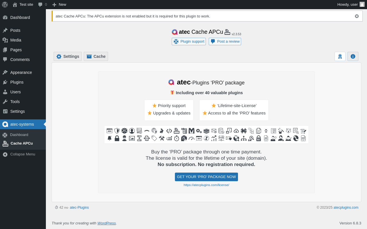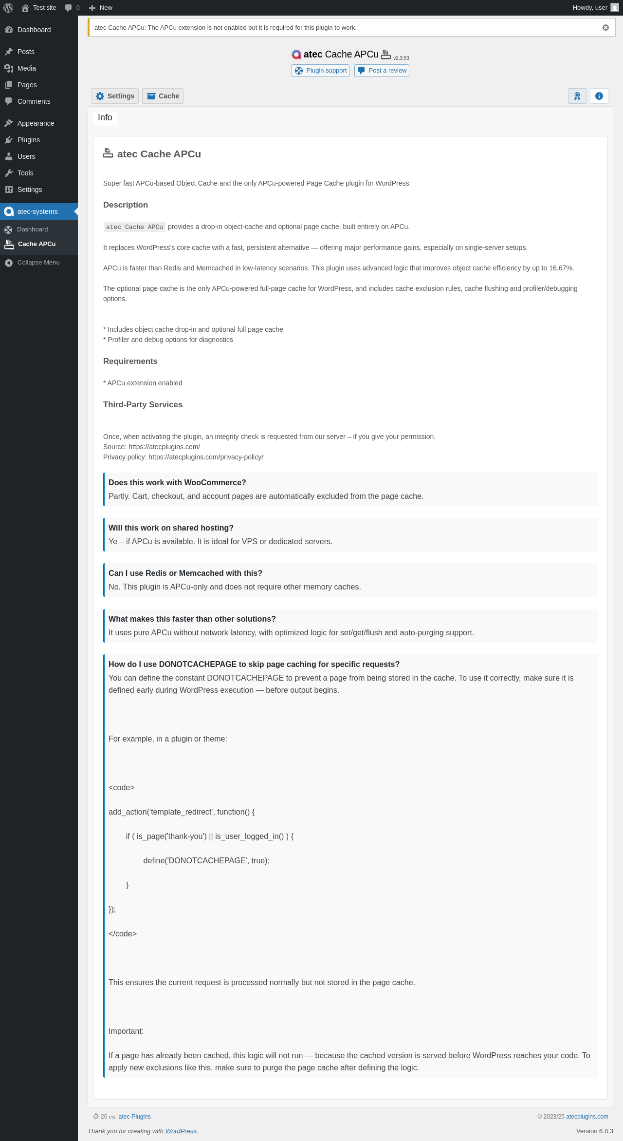 Does atec Cache APCu work with WordPress 6.8.3 and PHP 8.1.12? A smoke test was performed on .