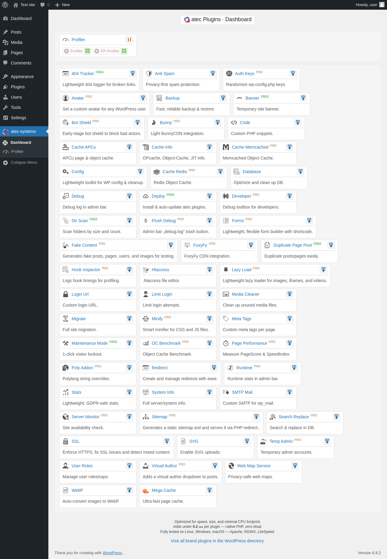 Does atec Profiler work with WordPress 6.8.2 and PHP 8.1.12? A smoke test was performed on .