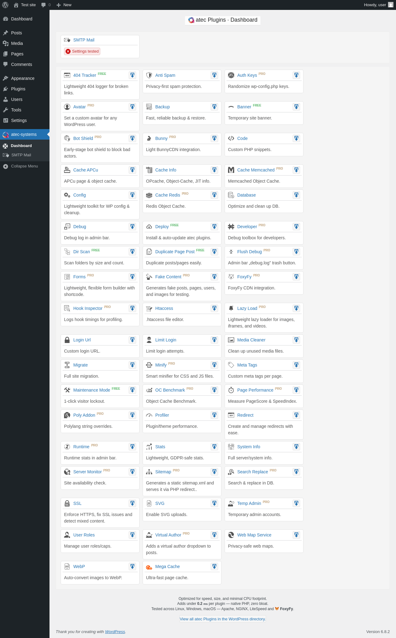 Does atec SMTP Mail work with WordPress 6.8.2 and PHP 8.1.12? A smoke test was performed on .