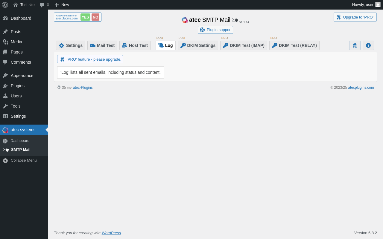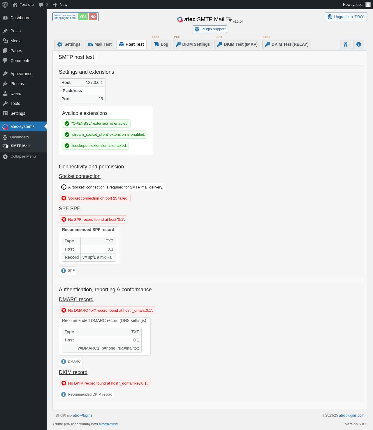 Does atec SMTP Mail work with WordPress 6.8.2 and PHP 8.1.12? A smoke test was performed on .