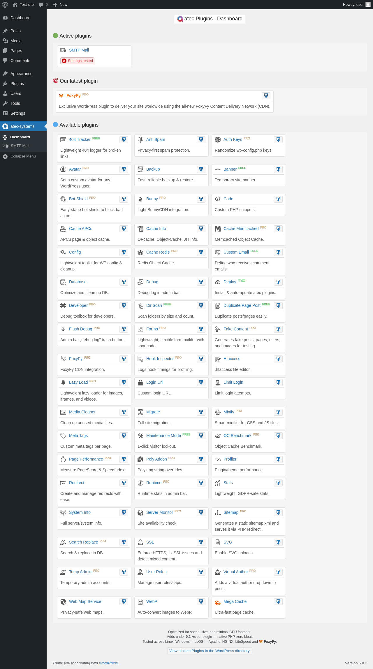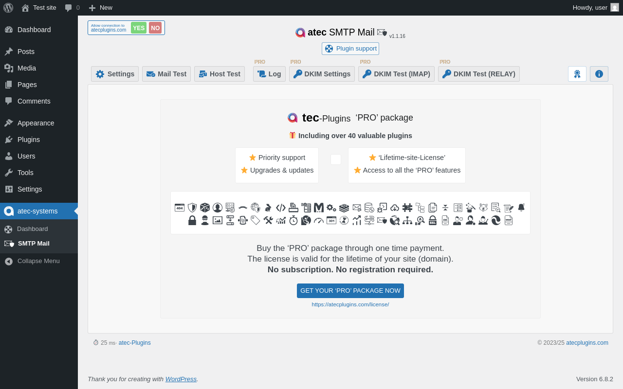 Does atec SMTP Mail work with WordPress 6.8.2 and PHP 8.1.12? A smoke test was performed on .