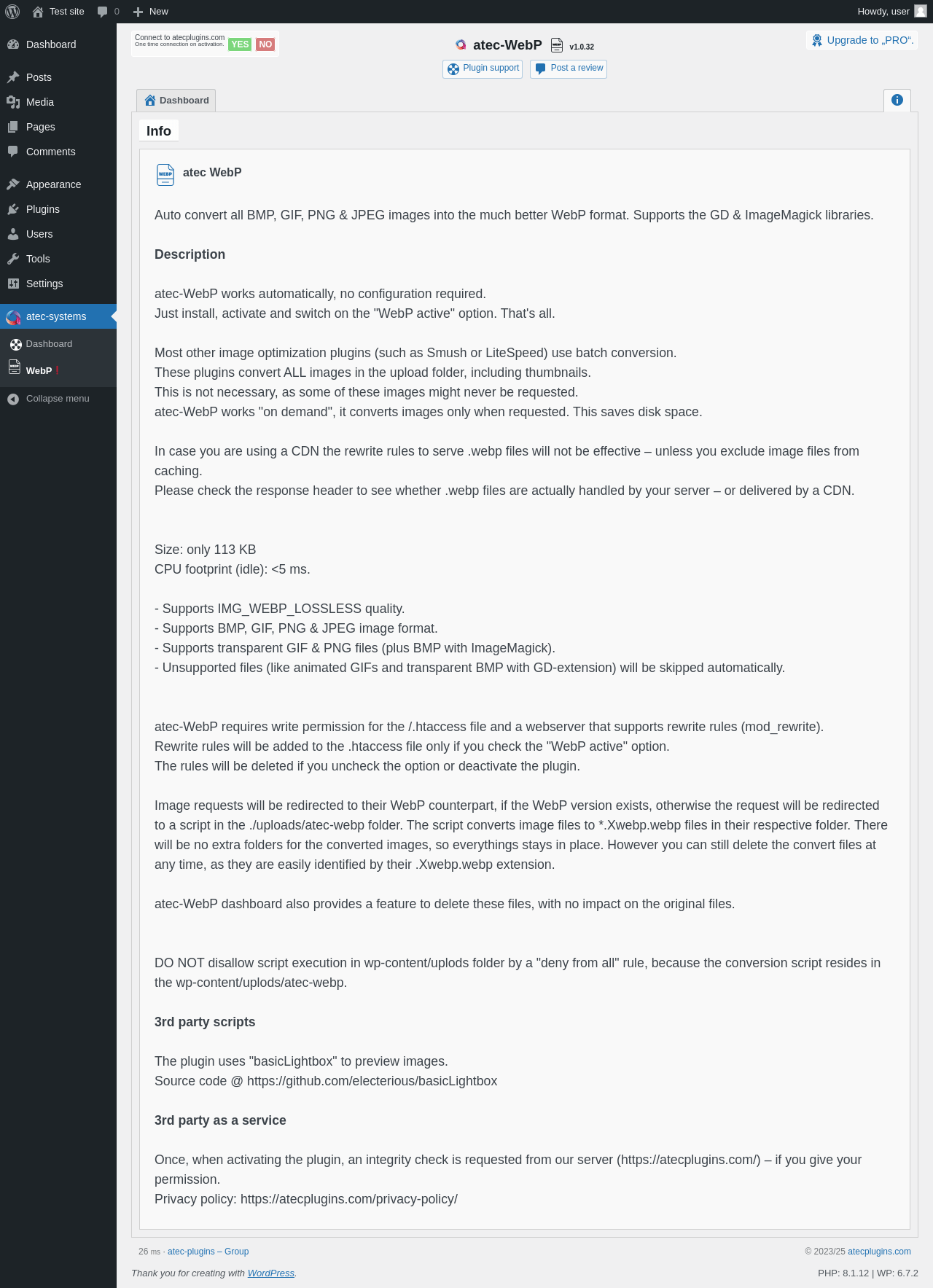 Does atec WebP work with WordPress 6.7.2 and PHP 8.1.12? A smoke test was performed on .