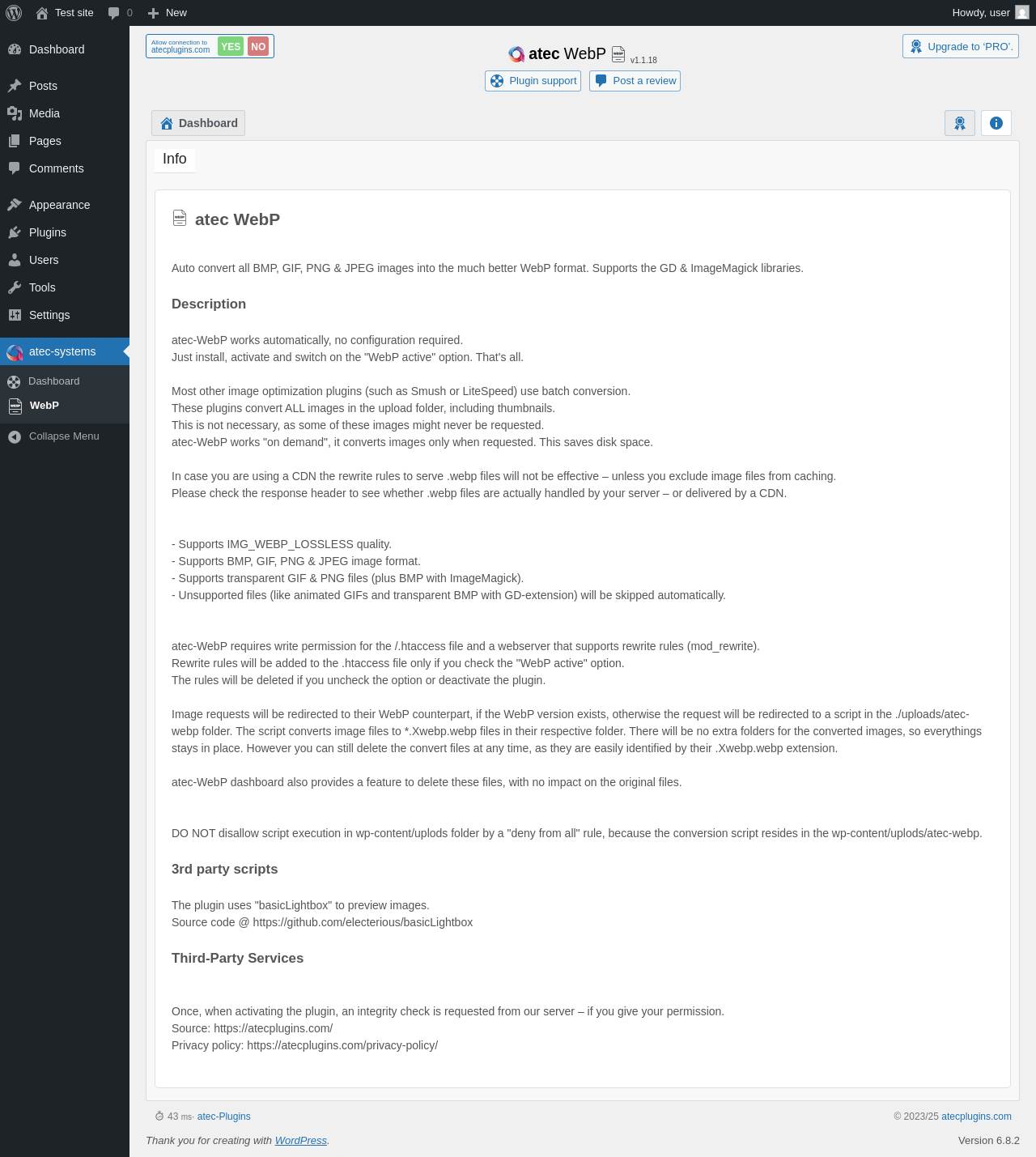 Does atec WebP work with WordPress 6.8.2 and PHP 8.1.12? A smoke test was performed on .