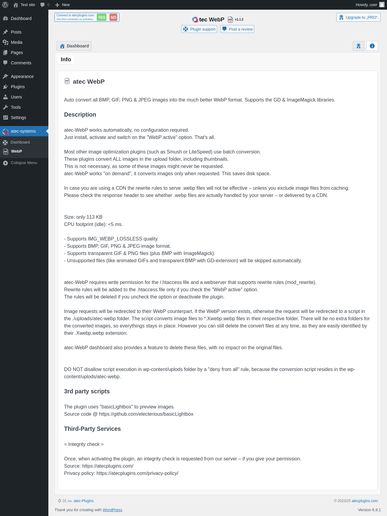Does atec WebP work with WordPress 6.8.1 and PHP 8.1.12? A smoke test was performed on .