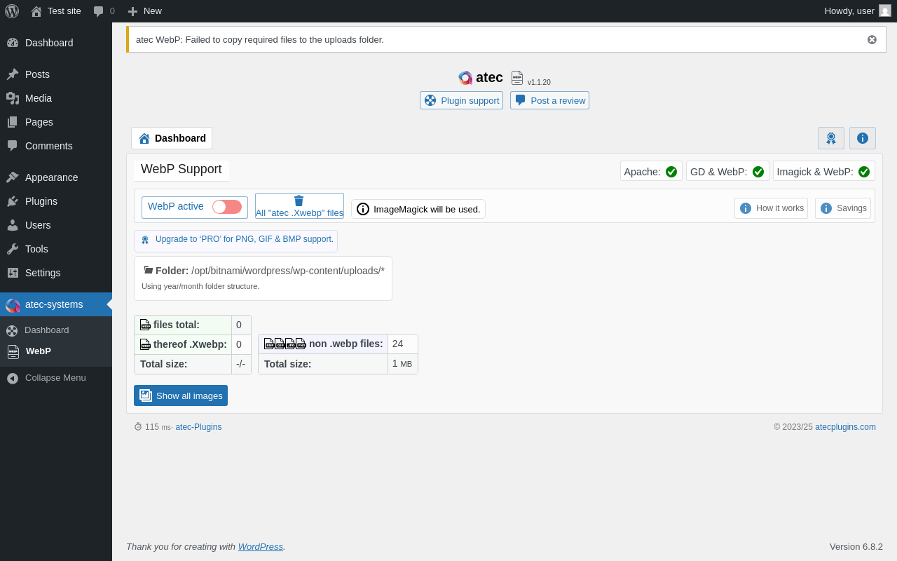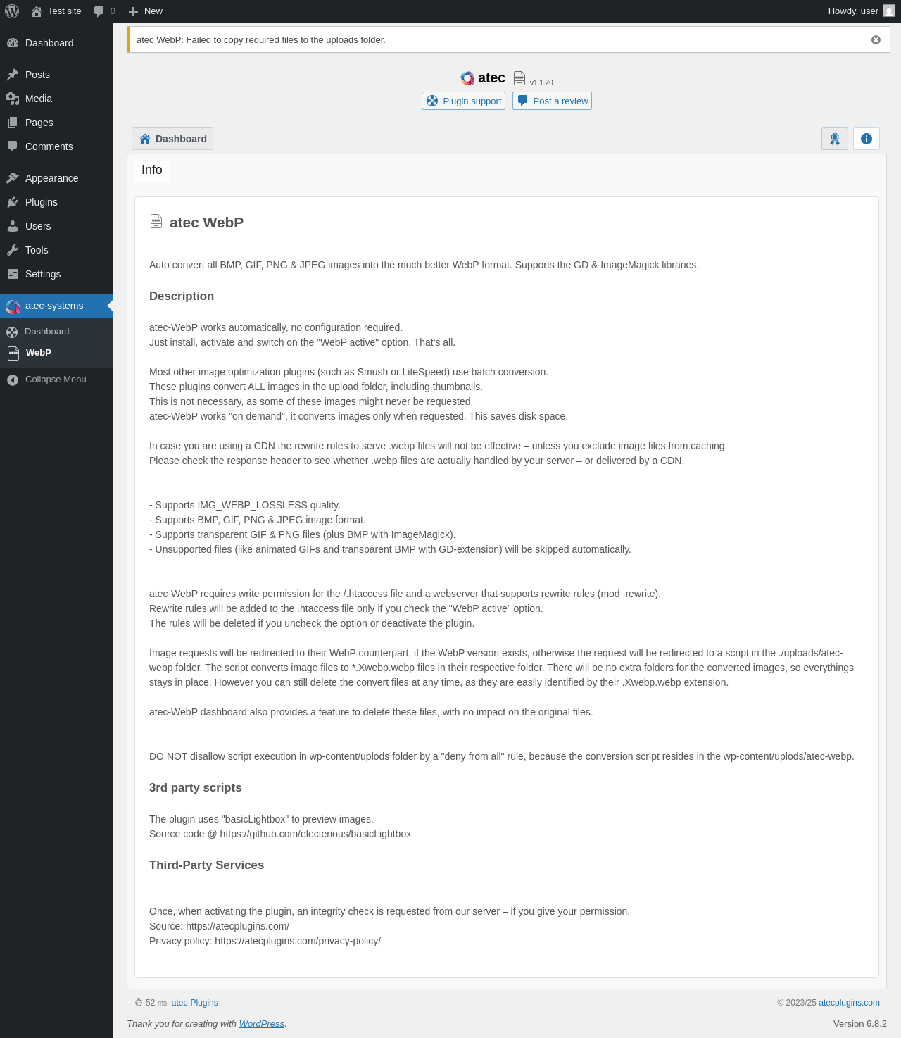 Does atec WebP work with WordPress 6.8.2 and PHP 8.1.12? A smoke test was performed on .
