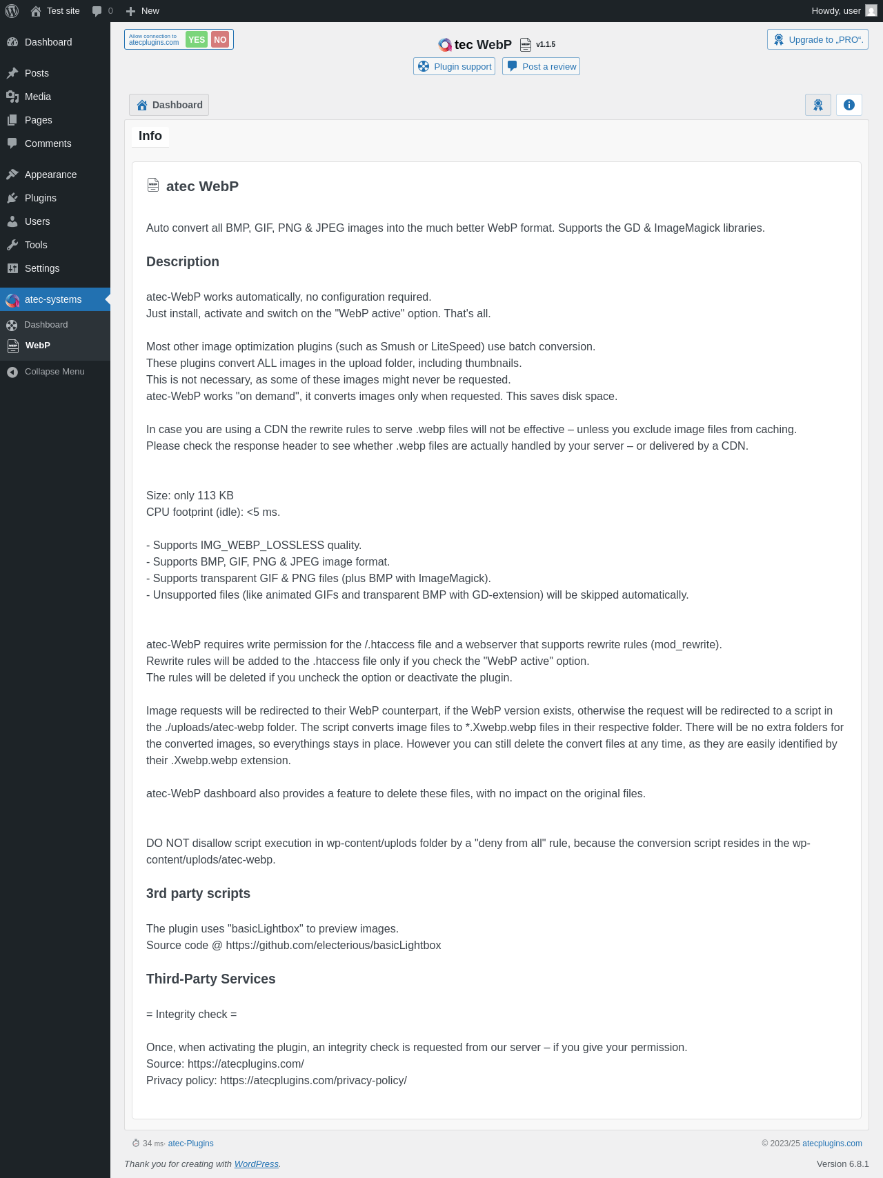 Does atec WebP work with WordPress 6.8.1 and PHP 8.1.12? A smoke test was performed on .