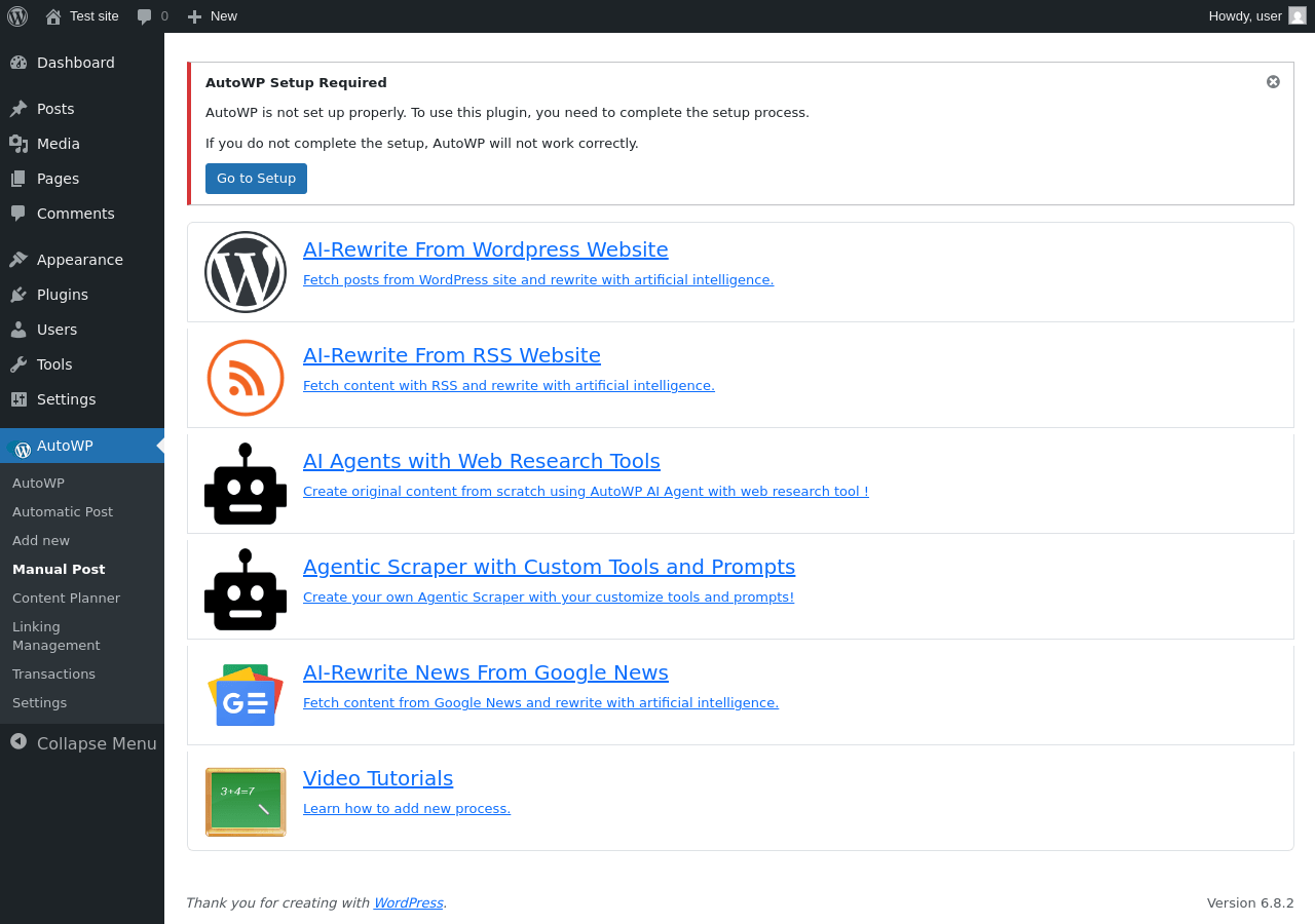Does "AutoWP - AI Content Writer & Rewriter" work with WordPress 6.8.2 and PHP 8.1.12? A smoke test was performed on .