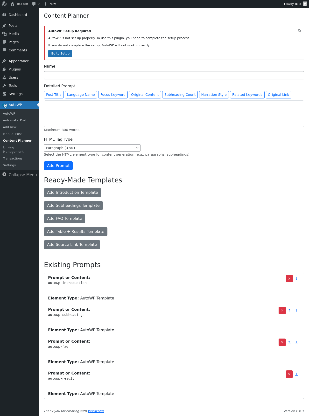 Does "AutoWP - AI Content Writer & Rewriter" work with WordPress 6.8.3 and PHP 8.1.12? A smoke test was performed on .