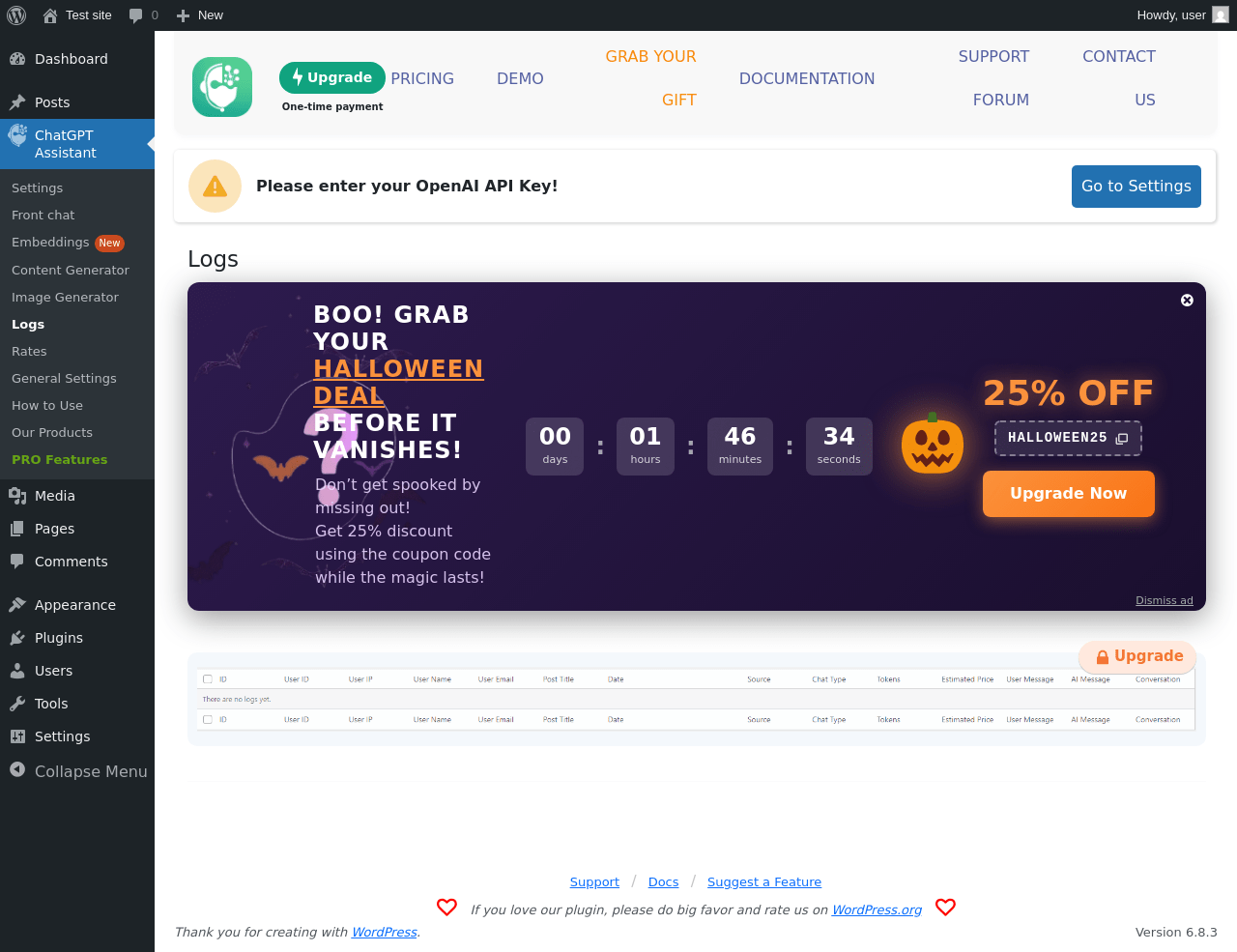 | URL | /wp-admin/admin.php?page=ays-chatgpt-assistant-logs |