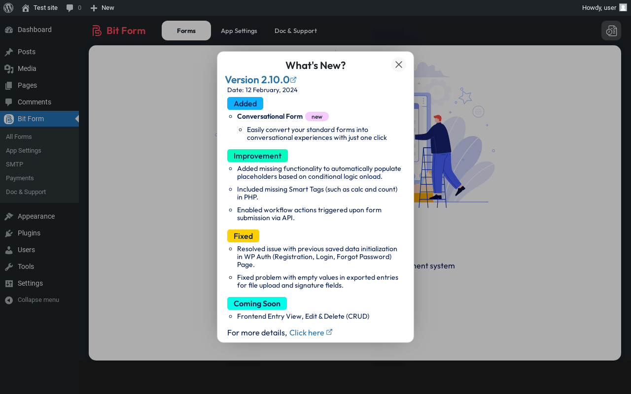 Does Bit Form work with WordPress 6.5.2 and PHP 8.1.12? A smoke test was performed on .