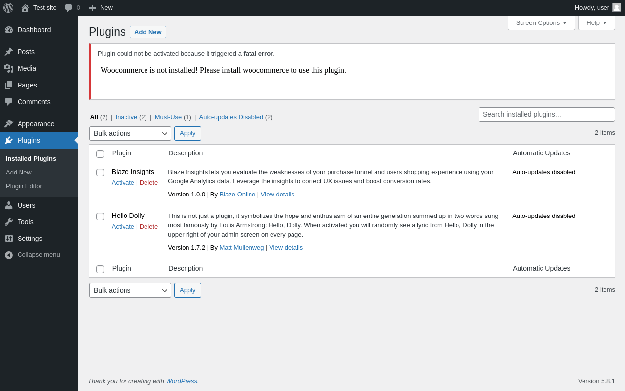 Does Blaze Insights work with WordPress 5.8.1 and PHP 7.4.8? A smoke test was performed on .