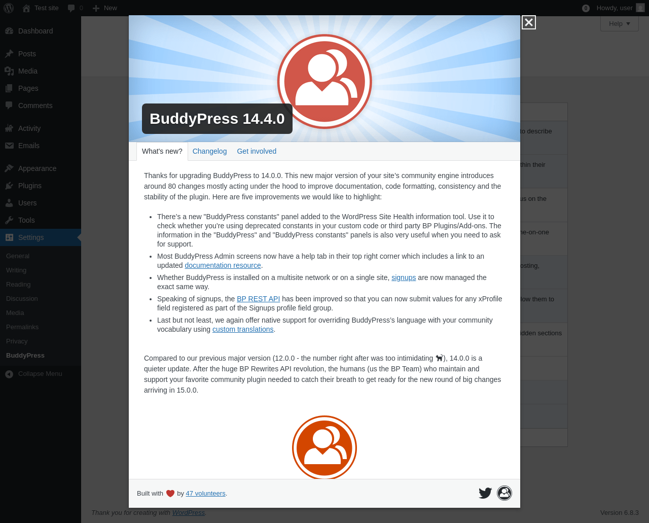 Does BuddyPress work with WordPress 6.8.3 and PHP 8.1.12? A smoke test was performed on .