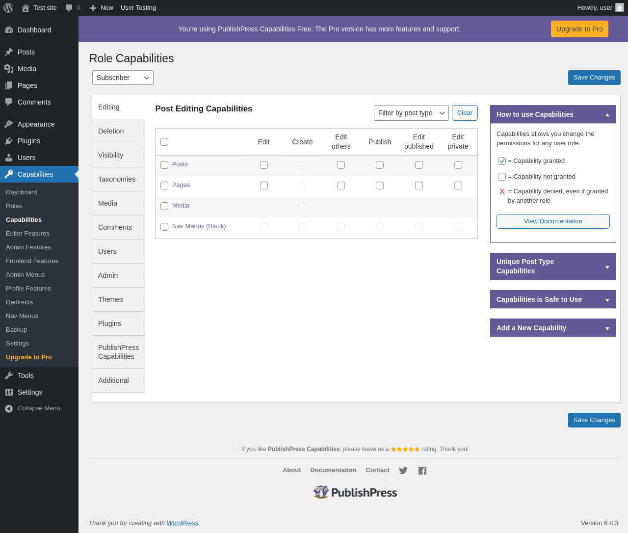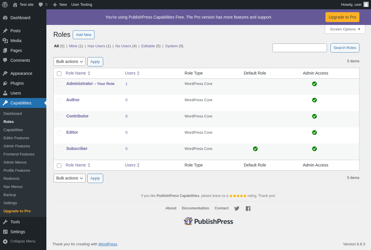 Does PublishPress Capabilities work with WordPress 6.8.3 and PHP 8.1.12? A smoke test was performed on .