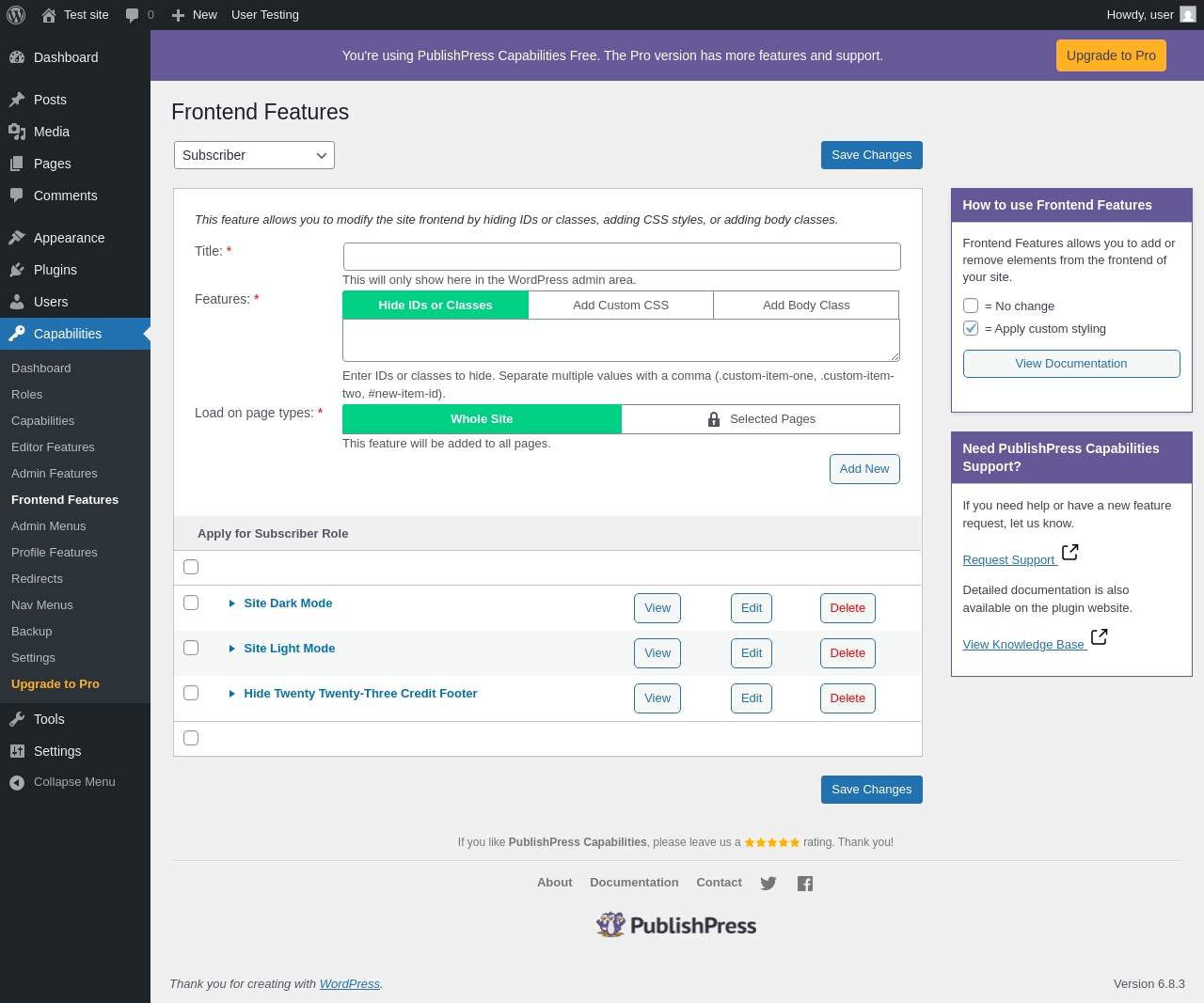 | URL | /wp-admin/admin.php?page=pp-capabilities-frontend-features |