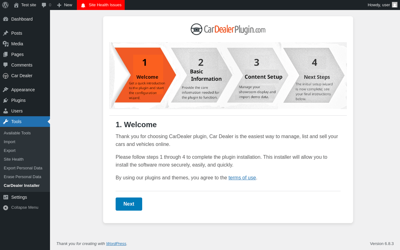 Does CarDealer work with WordPress 6.8.3 and PHP 8.1.12? A smoke test was performed on .