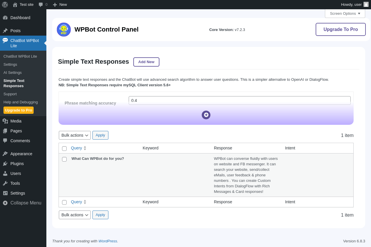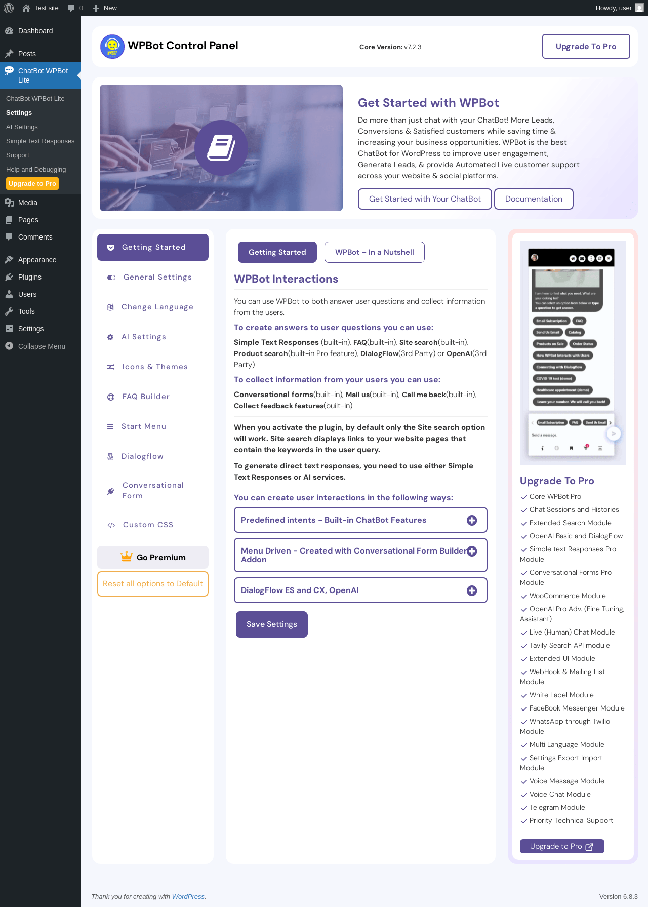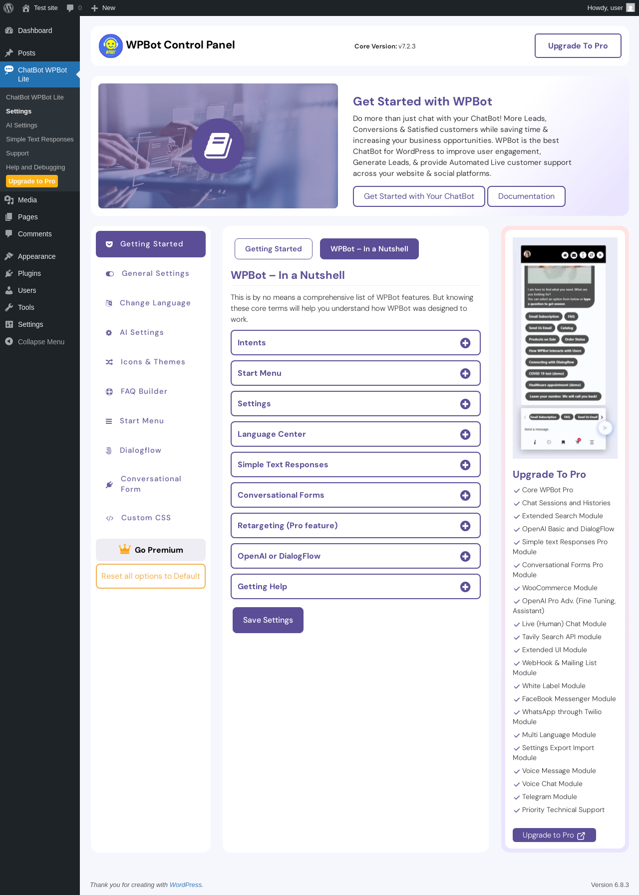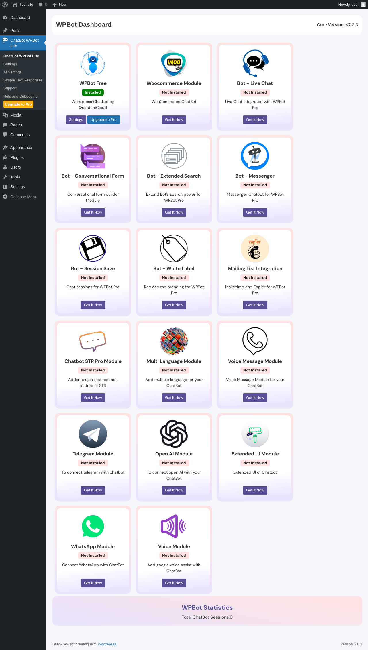 Does "WPBot ChatBot for WordPress for Live Support and Lead Generation" work with WordPress 6.8.3 and PHP 8.1.12? A smoke test was performed on .