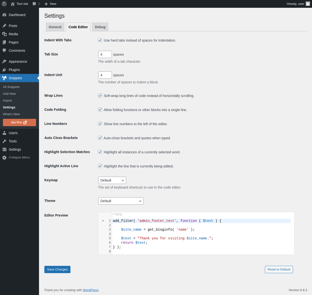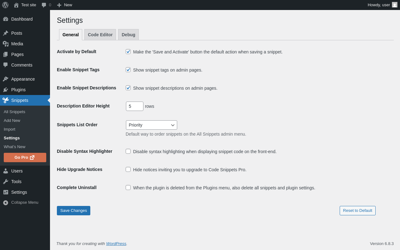 URL | /wp-admin/admin.php?page=snippets-settings§ion=debug |