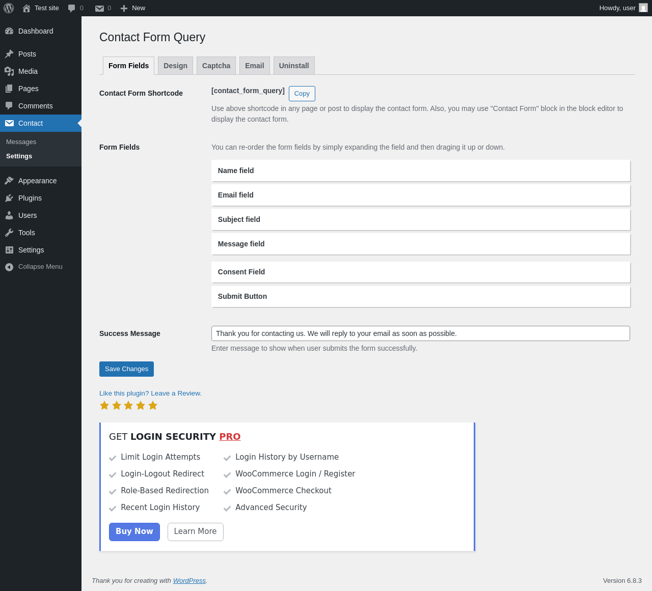 Does Contact Form Query work with WordPress 6.8.3 and PHP 8.1.12? A smoke test was performed on .
