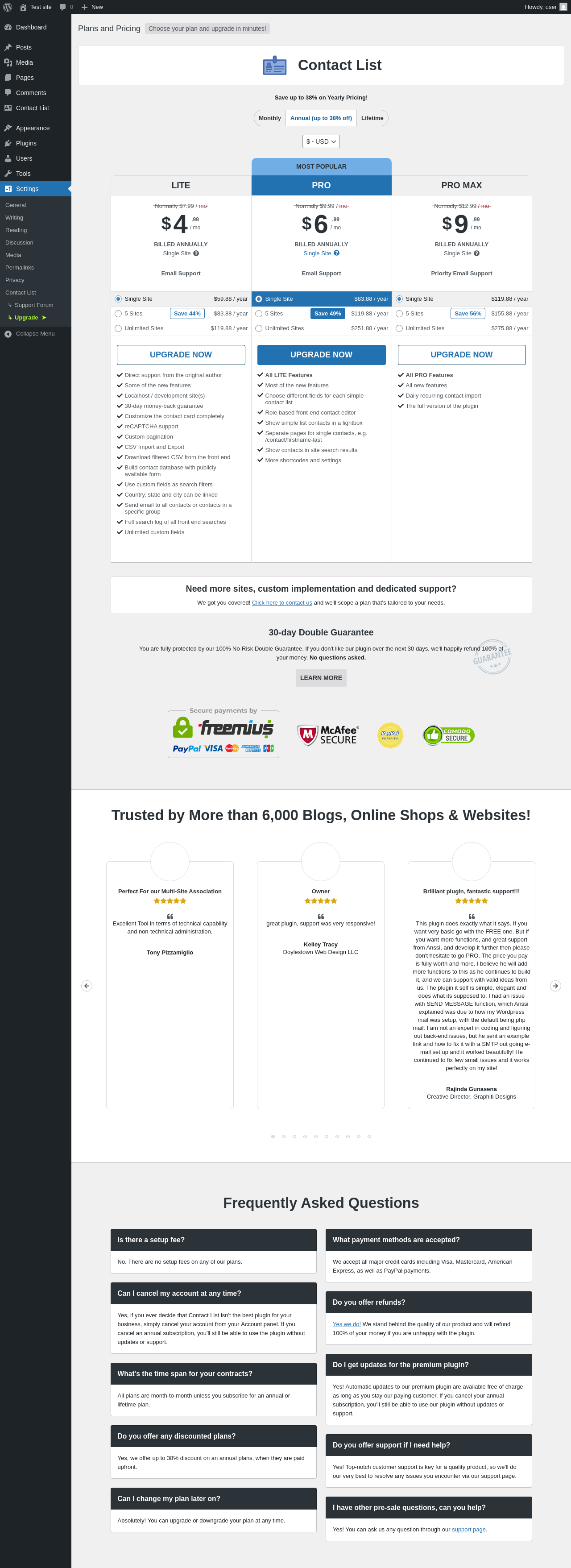 | URL | /wp-admin/options-general.php?page=contact-list-pricing |