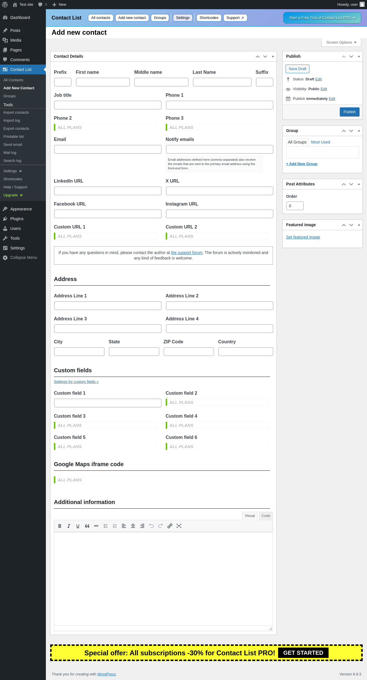 Does Contact List work with WordPress 6.8.3 and PHP 8.1.12? A smoke test was performed on .