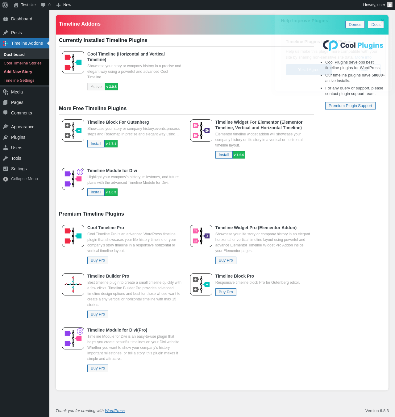 Does Cool Timeline work with WordPress 6.8.3 and PHP 8.1.12? A smoke test was performed on .