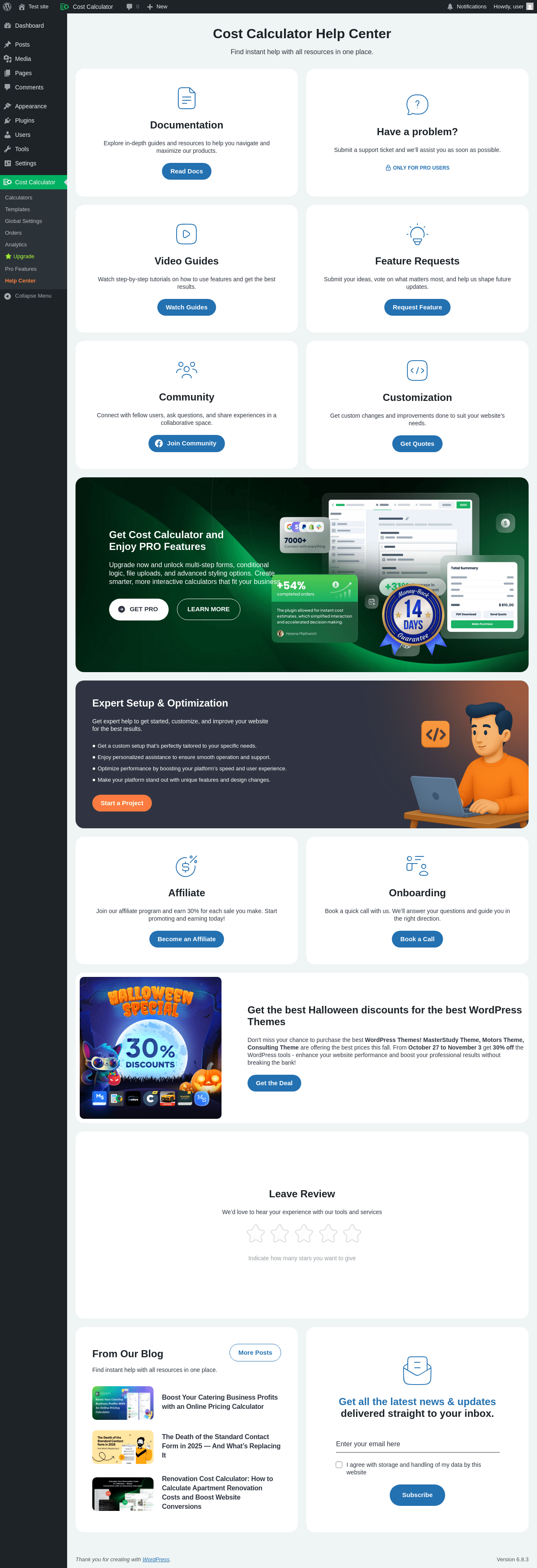 Does Cost Calculator Builder work with WordPress 6.8.3 and PHP 8.1.12? A smoke test was performed on .
