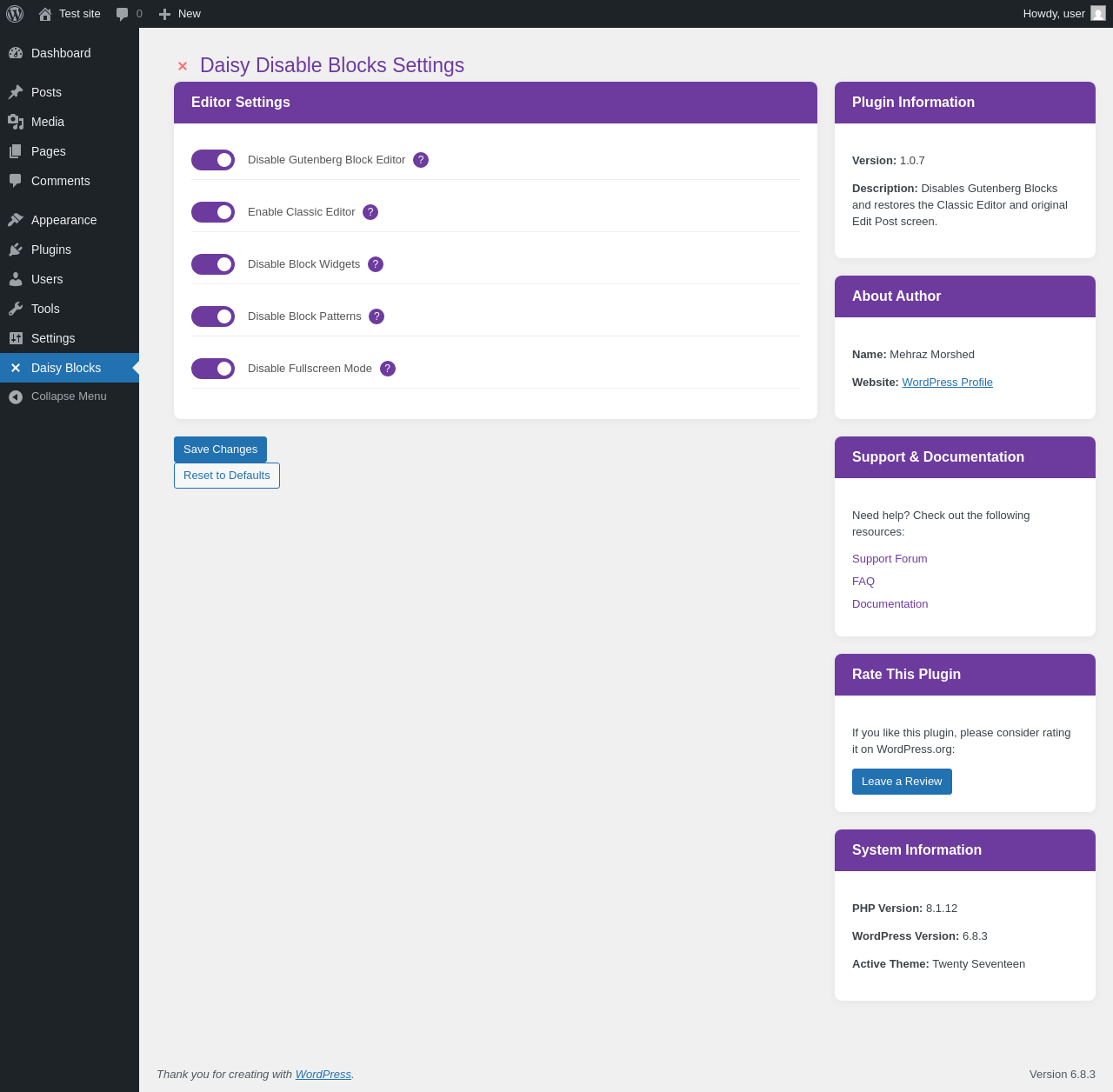 Does Daisy Disable Blocks work with WordPress 6.8.3 and PHP 8.1.12? A smoke test was performed on .