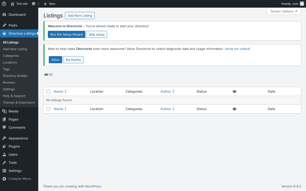 Does "Directorist - Business Directory Plugin" work with WordPress 6.8.2 and PHP 8.1.12? A smoke test was performed on .