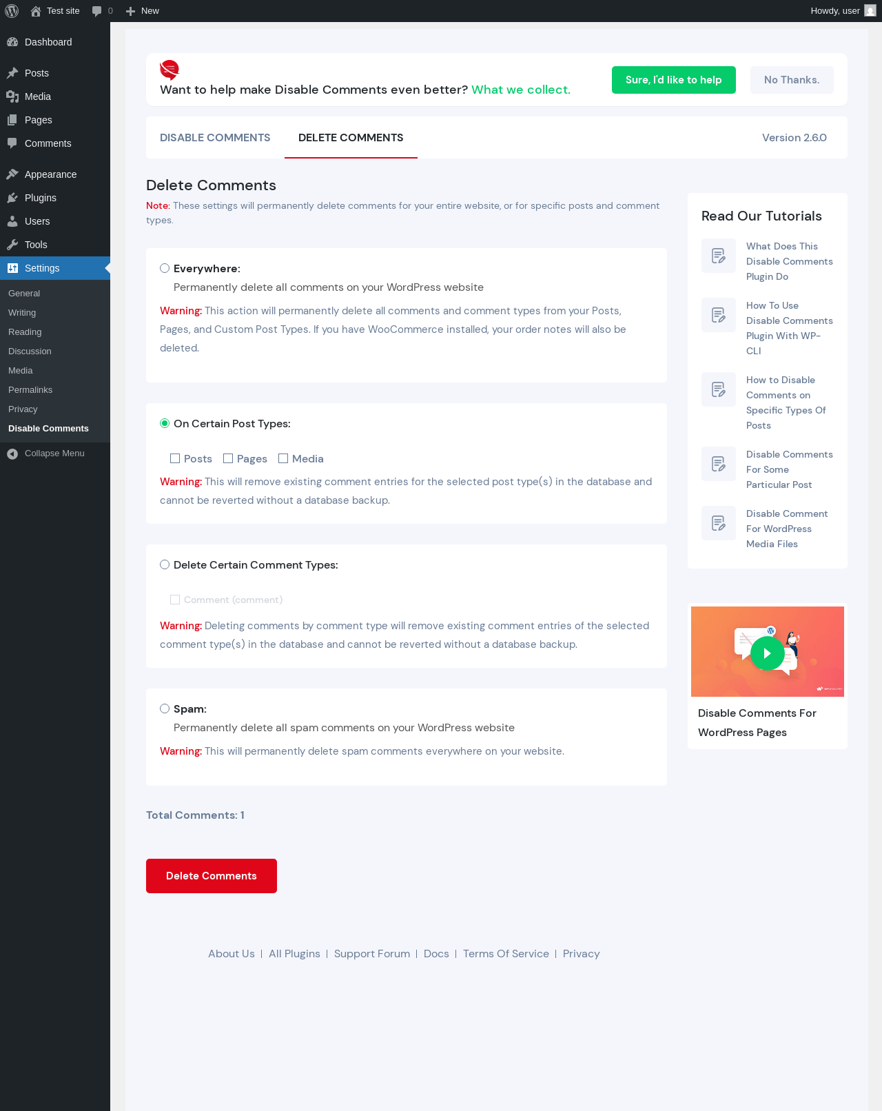 | WordPress.org page | https://wordpress.org/plugins/disable-comments/ |