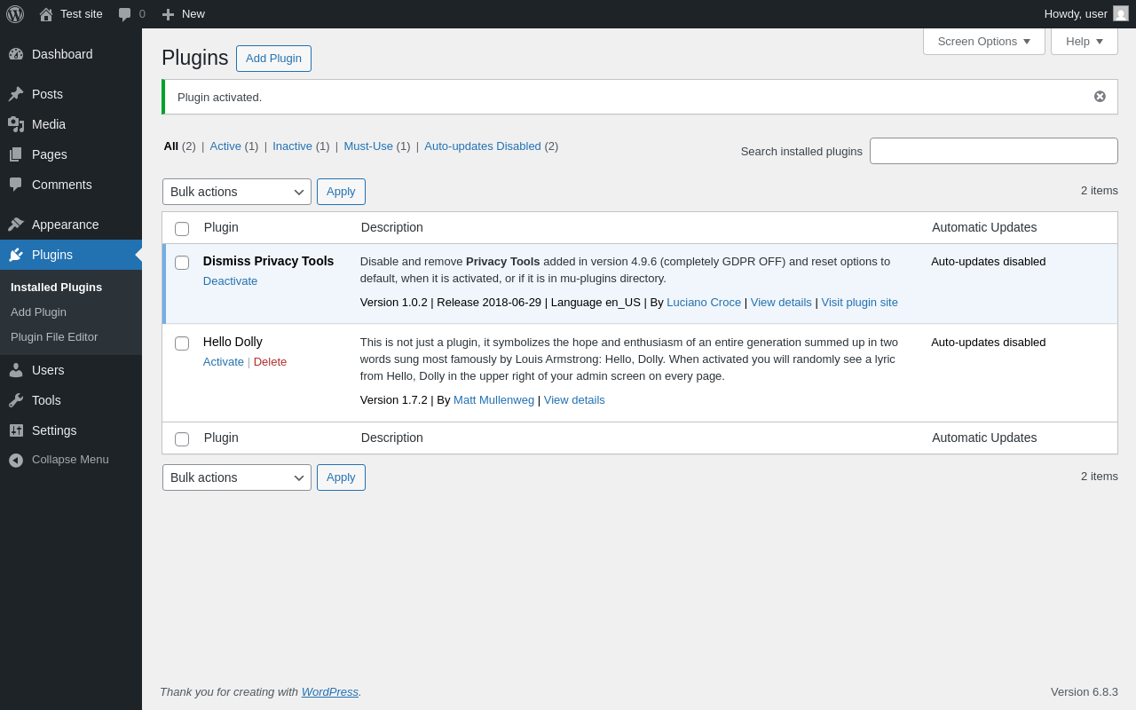 Does Dismiss Privacy Tools work with WordPress 6.8.3 and PHP 8.1.12? A smoke test was performed on .