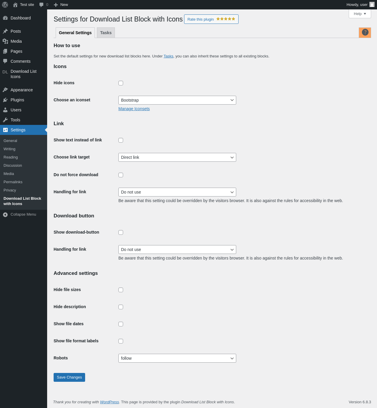 | URL | /wp-admin/options-general.php?page=downloadlist_settings |