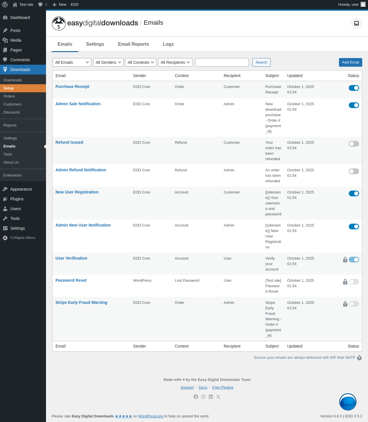 Does Easy Digital Downloads work with WordPress 6.8.3 and PHP 8.1.12? A smoke test was performed on 2025-10-01 01:54:24 UTC .