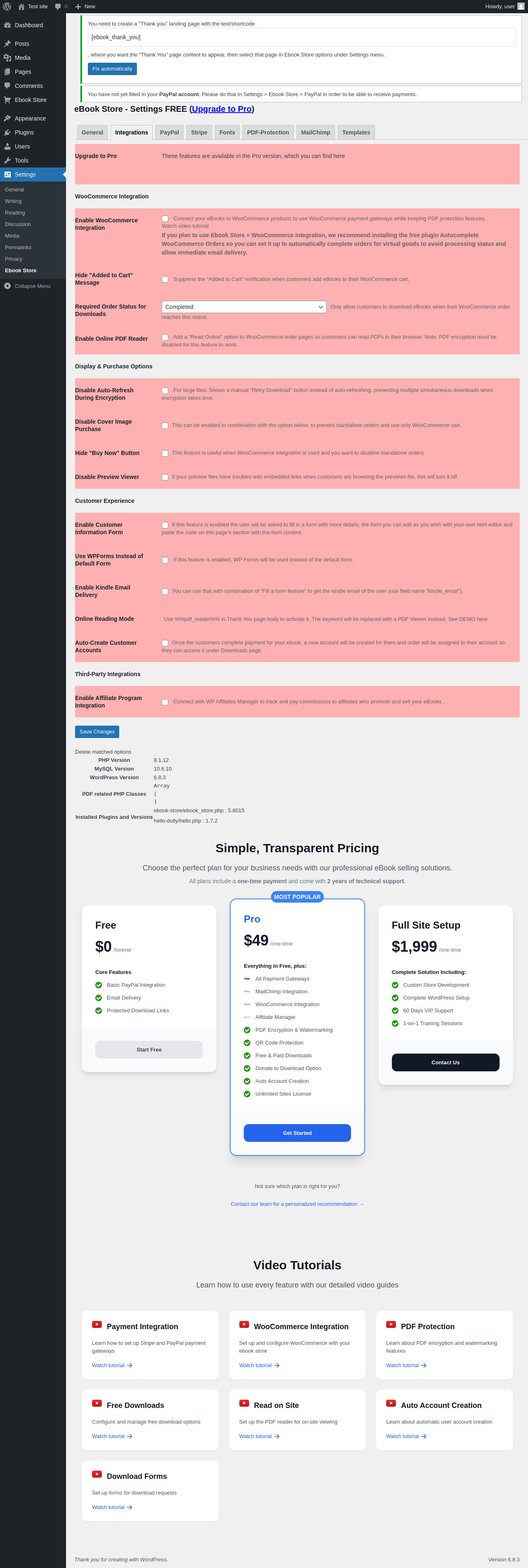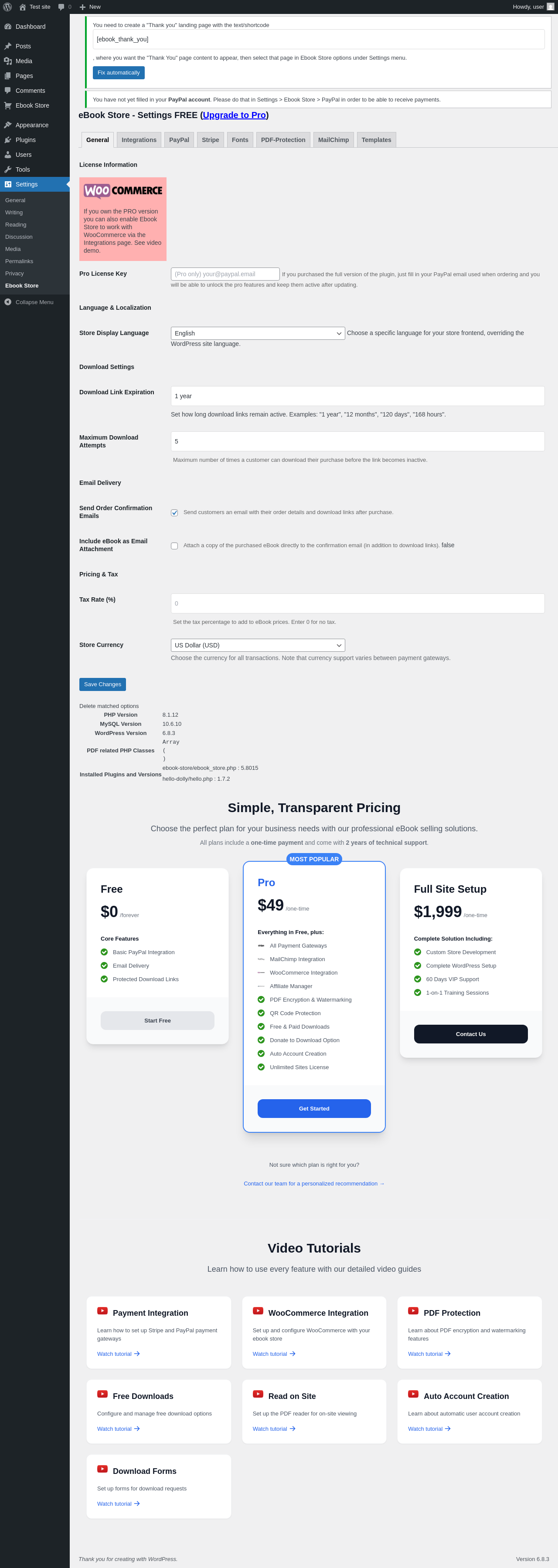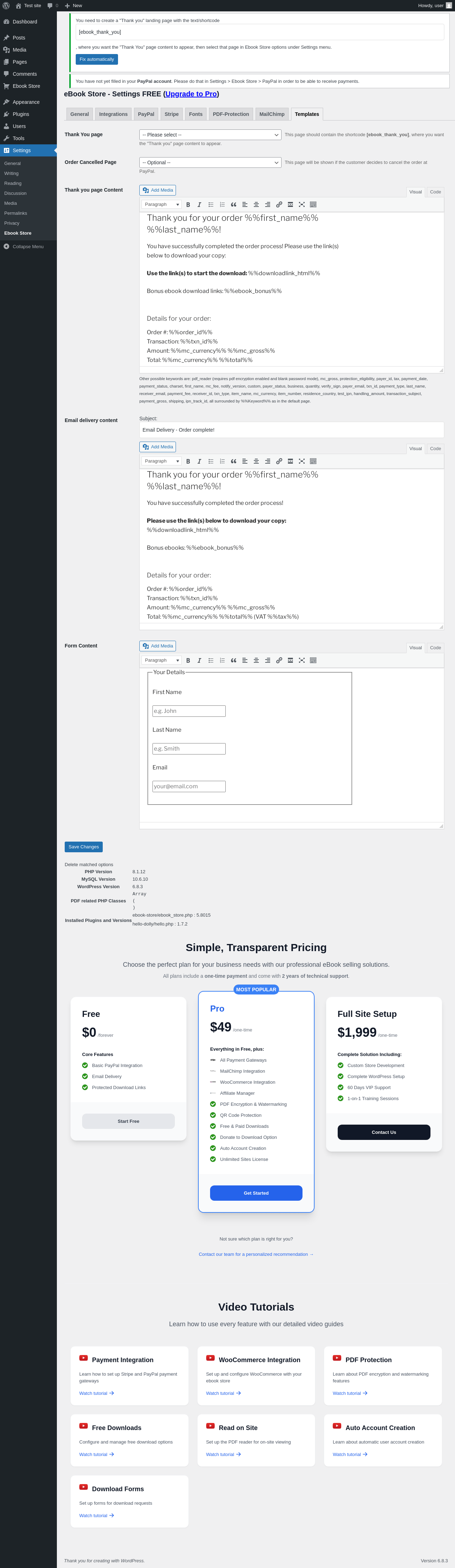 Does eBook store work with WordPress 6.8.3 and PHP 8.1.12? A smoke test was performed on .
