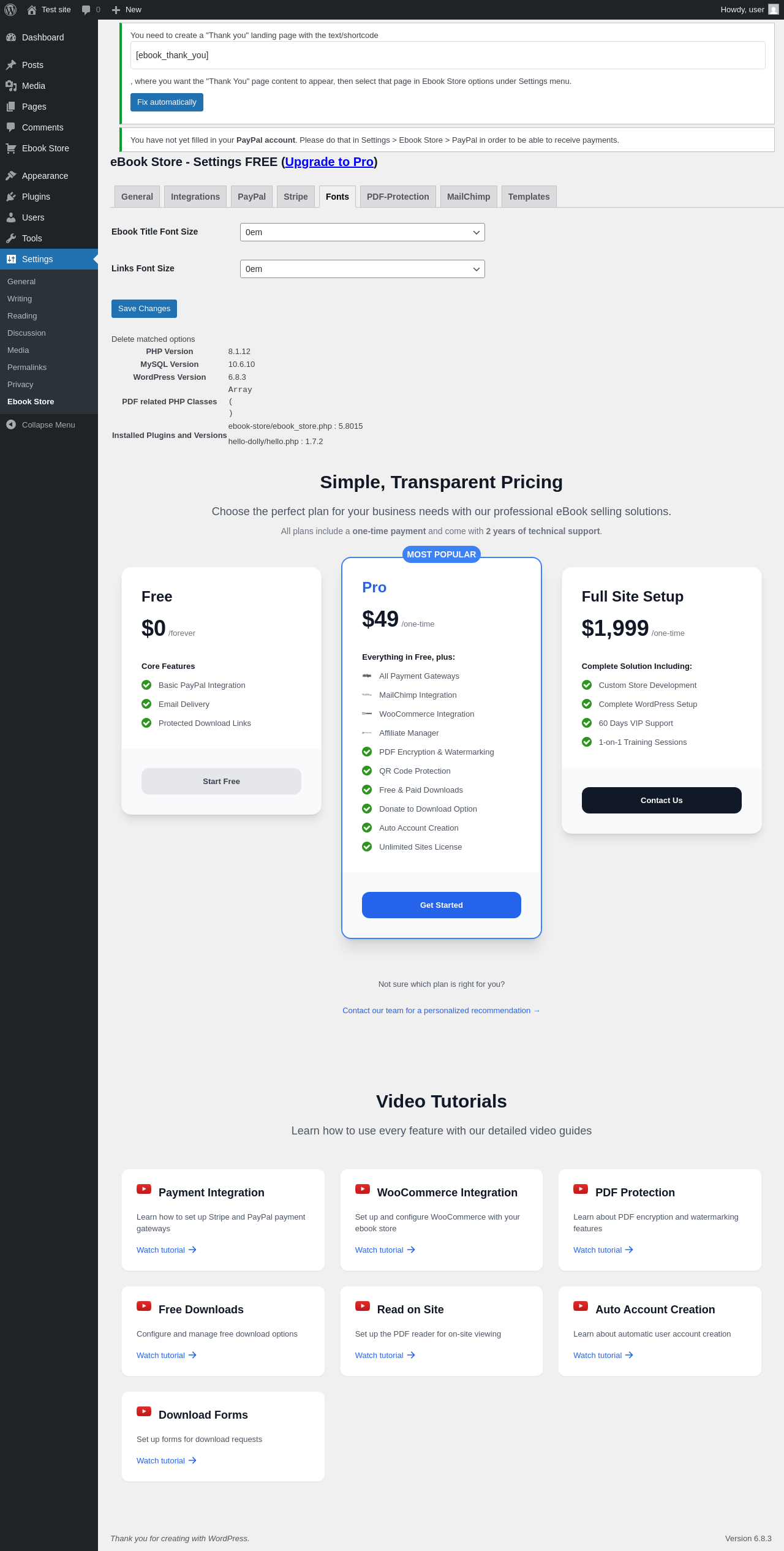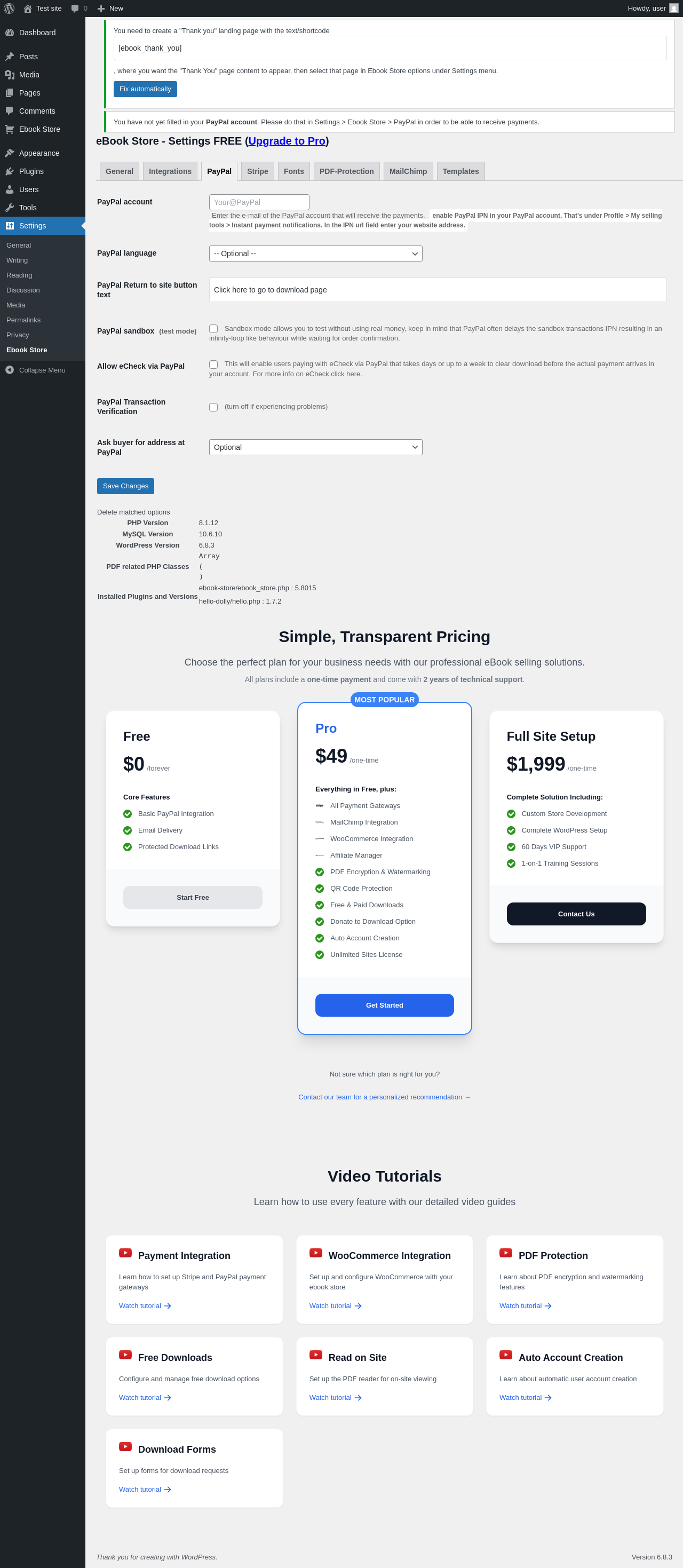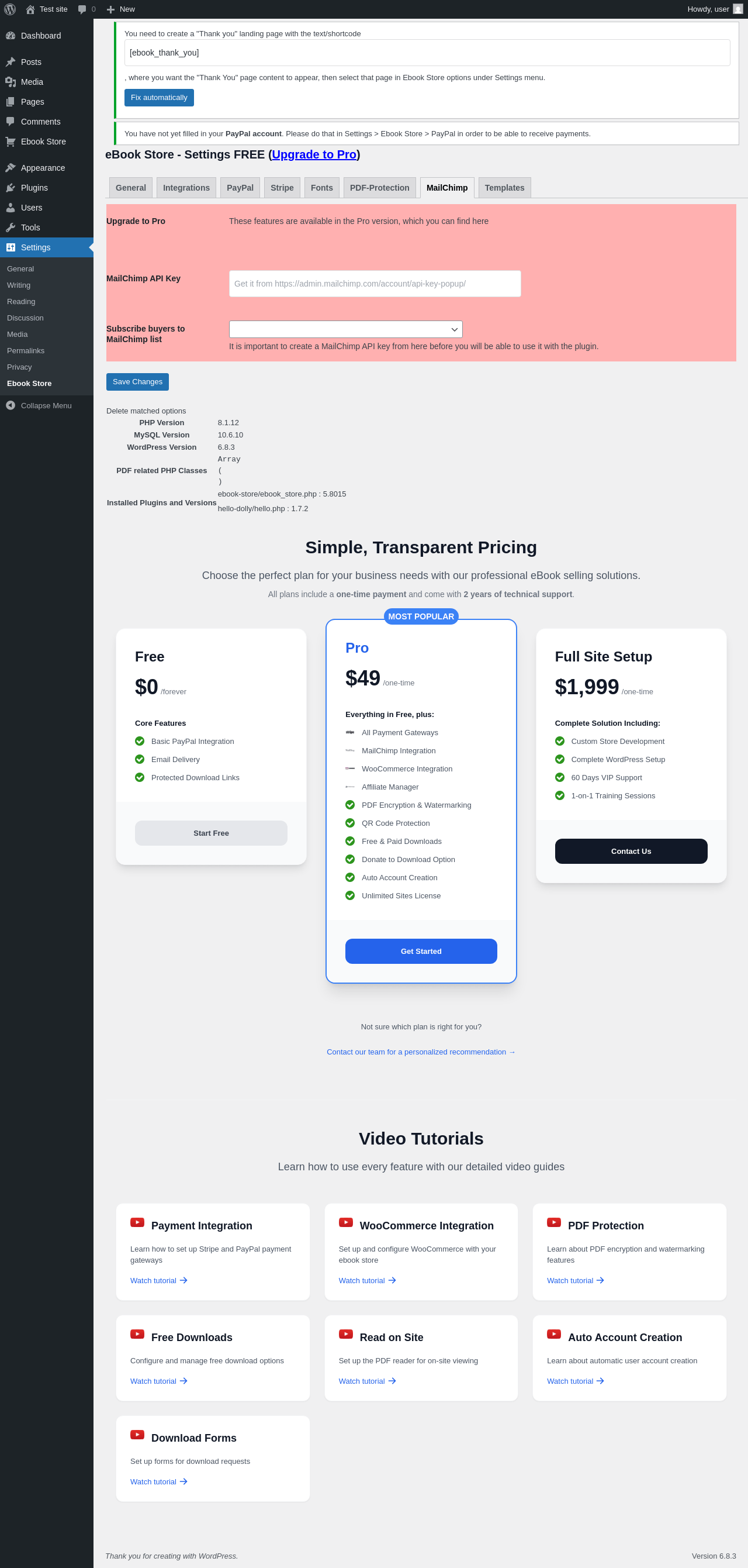 Does eBook store work with WordPress 6.8.3 and PHP 8.1.12? A smoke test was performed on .