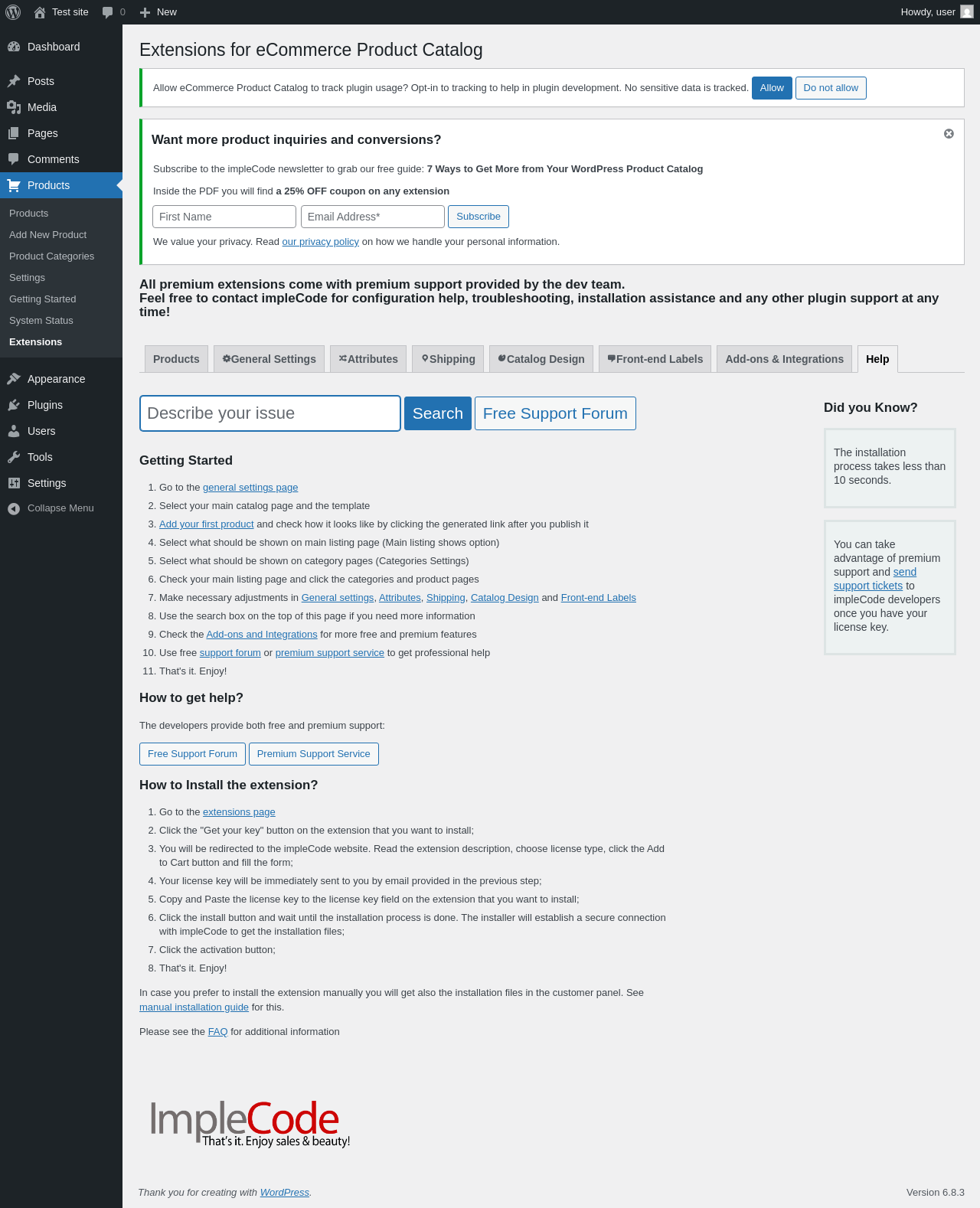 | URL | /wp-admin/edit.php?post_type=al_product&page=implecode_welcome&tab=new |