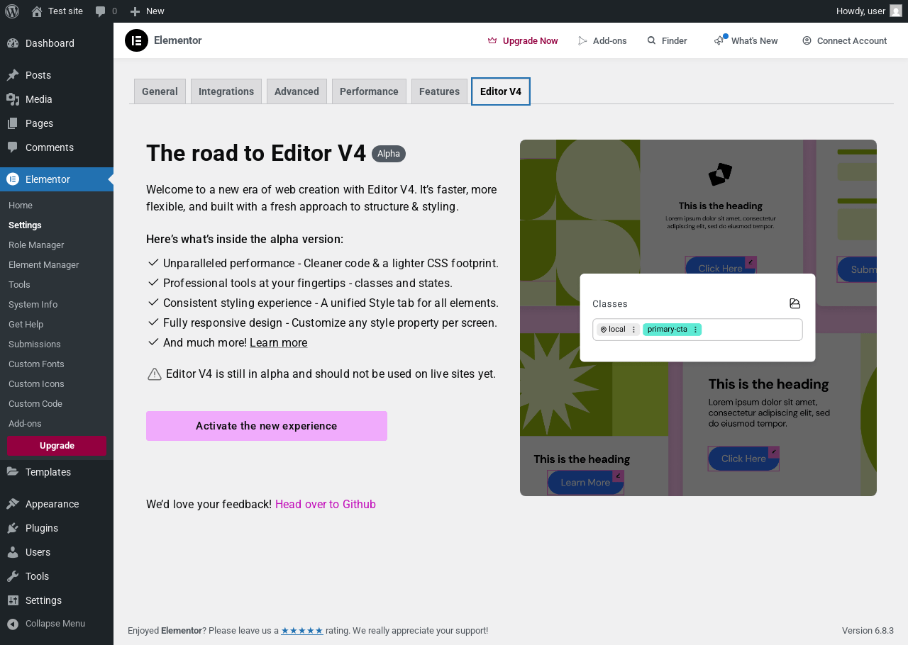 "message": "DOMException: Failed to execute 'querySelector' on 'Document': '.dsm-nav .e-n-menu-item:has(#dsm-nav-lang)' is not a valid selector.\n at https://elementor.com/pro/?utm_source=wp-menu&utm_campaign=gopro&utm_medium=wp-dash:7904:33\n at https://elementor.com/pro/?utm_source=wp-menu&utm_campaign=gopro&utm_medium=wp-dash:7929:3",