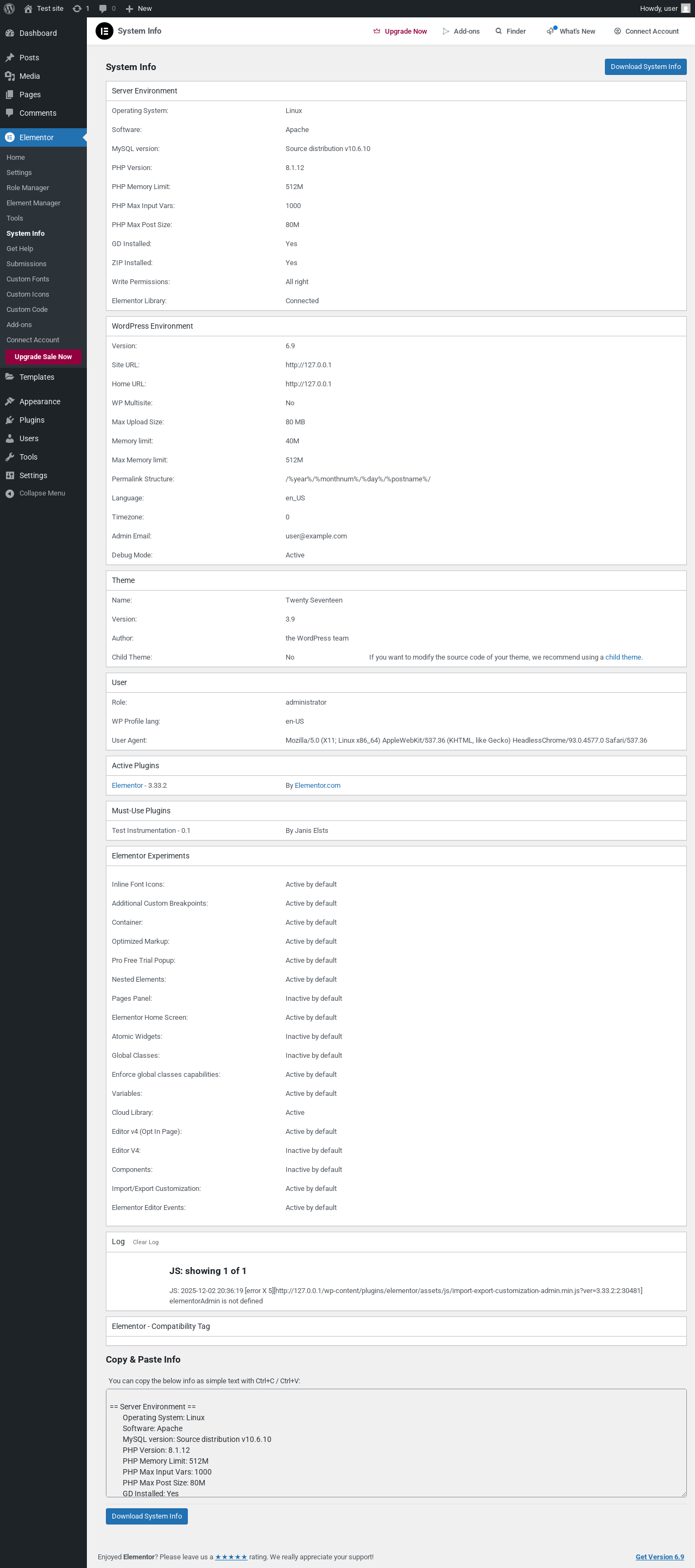 "message": "DOMException: Failed to execute 'querySelector' on 'Document': '.dsm-nav .e-n-menu-item:has(#dsm-nav-lang)' is not a valid selector.\n at https://elementor.com/pro/?utm_source=wp-menu&utm_campaign=gopro&utm_medium=wp-dash:8510:33\n at https://elementor.com/pro/?utm_source=wp-menu&utm_campaign=gopro&utm_medium=wp-dash:8535:3",