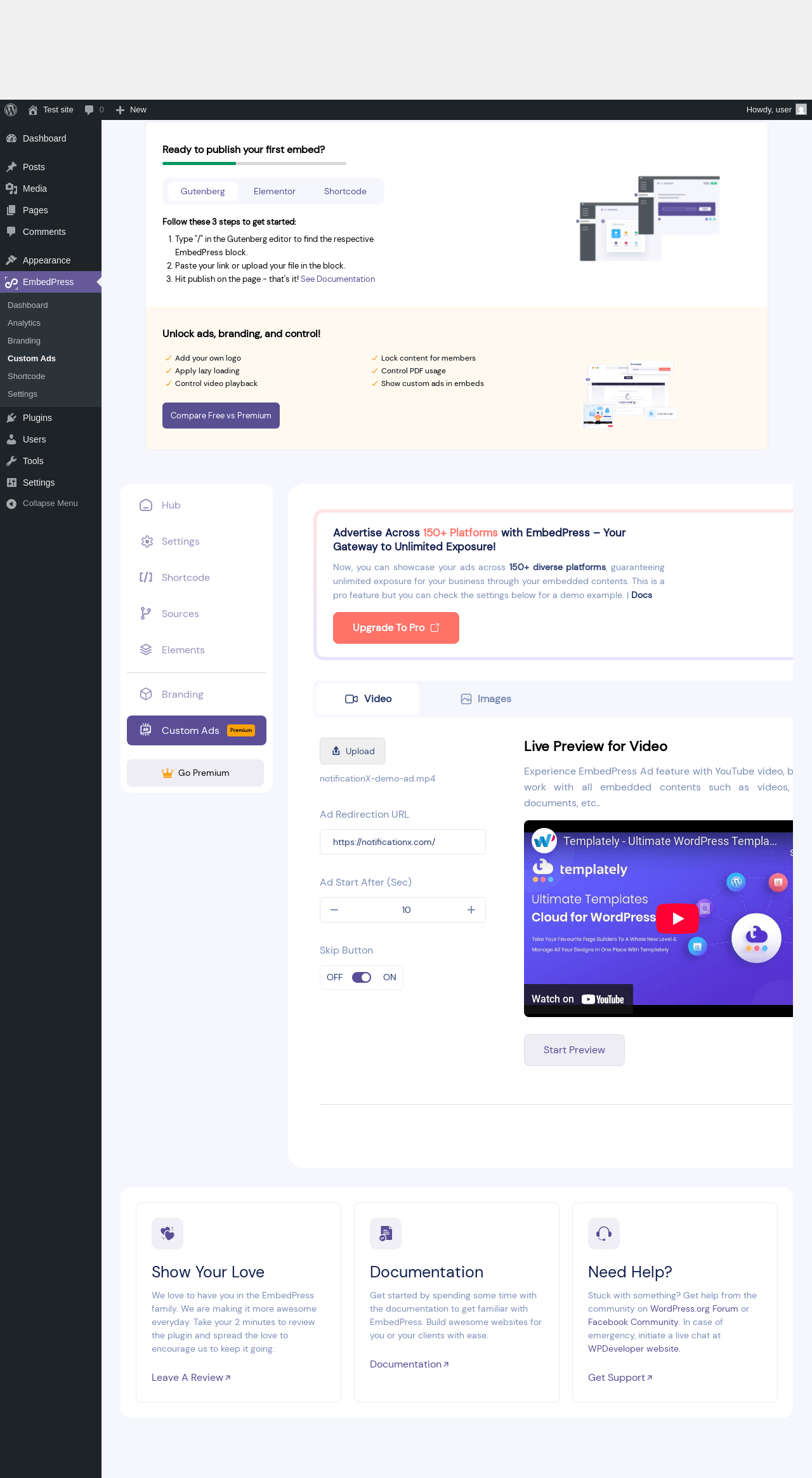 URL | /wp-admin/admin.php?page=embedpress&page_type=ads |