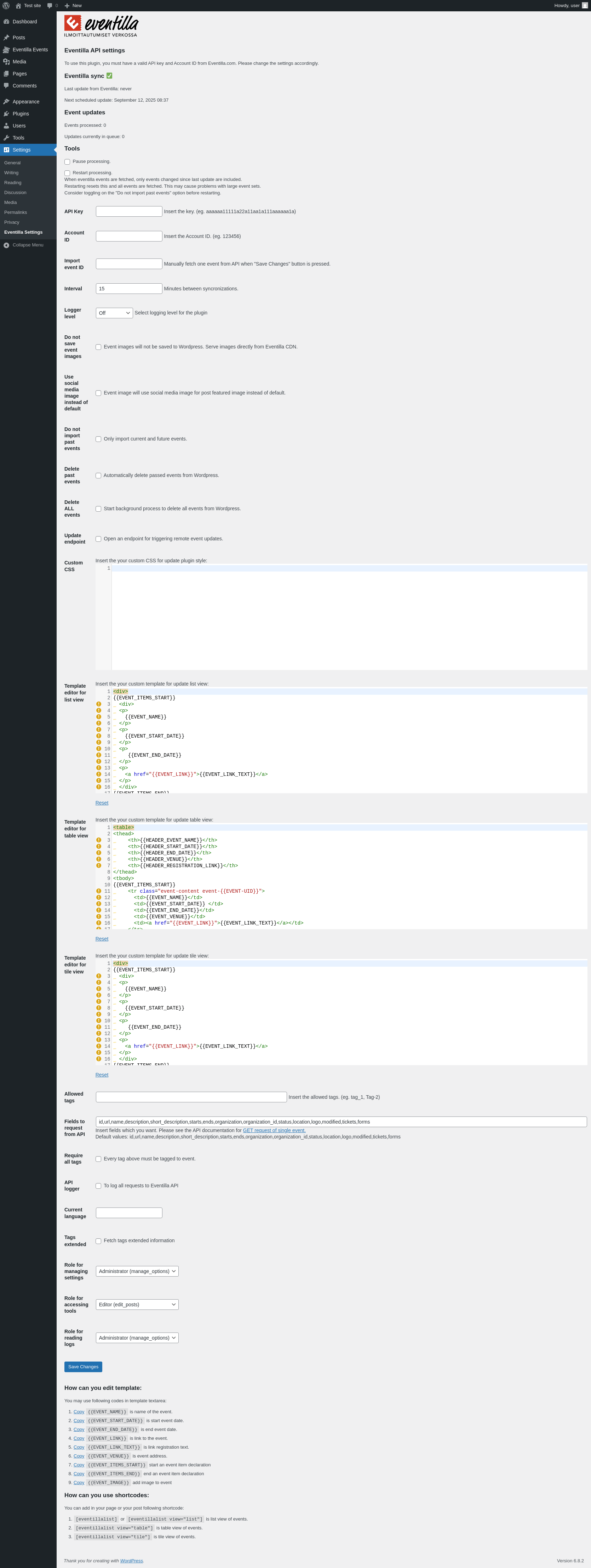 URL | /wp-admin/options-general.php?page=eventilla-wp |