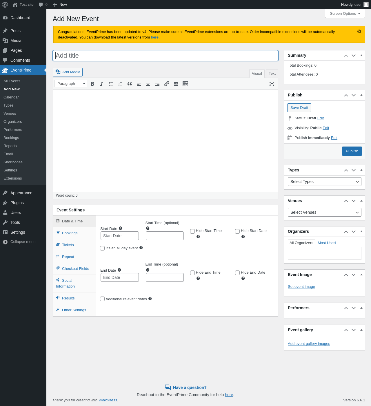 EventPrime → Add New